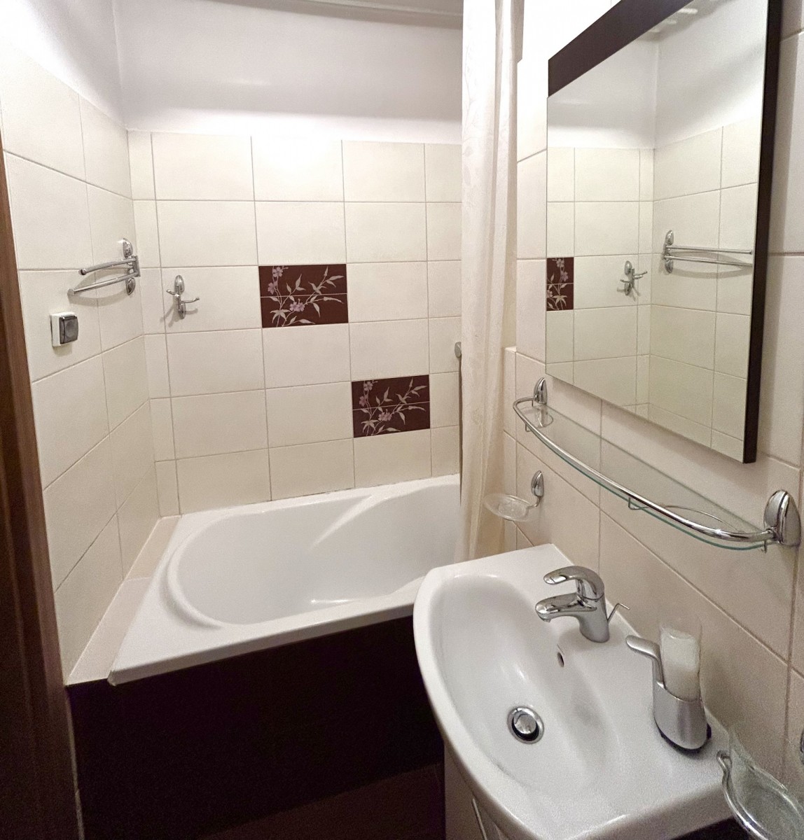 Łazienka z WC - powierzchnia ok 3m2 - z wanną i umywalką.