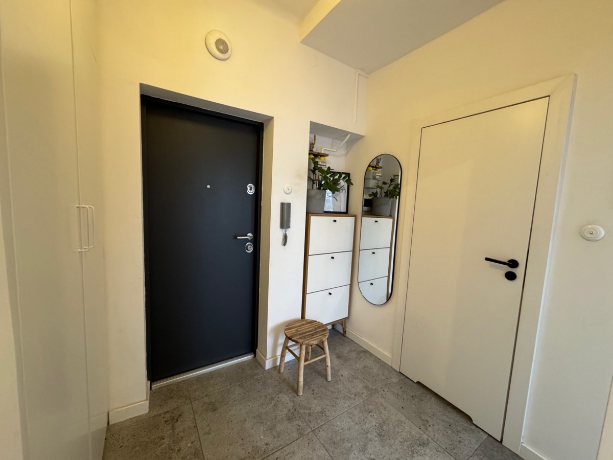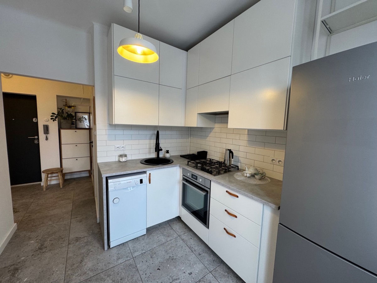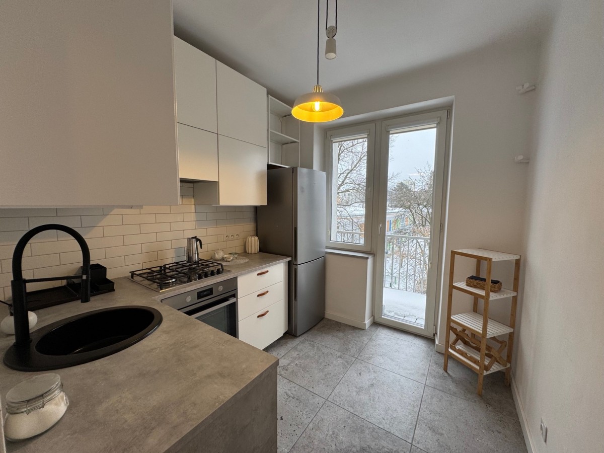 Mieszkanie składa się z salonu z aneksem sypialnianym, osobnej wyposażonej kuchni z wyjściem na balkon, korytarza i łazienki z nowoczesnym prysznicem, pralką i miejscami do przechowywania. Posiada słoneczny balkon i piwnicę. Kier. wschodnio - południowy.