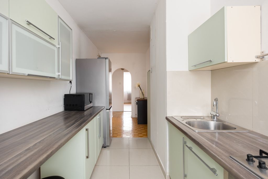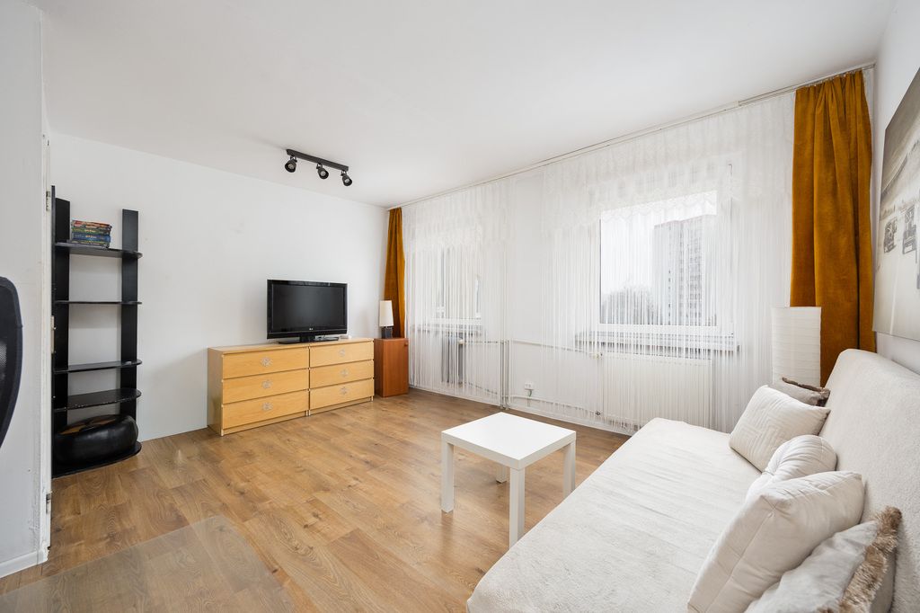 Ekspozycja południowo-północna sprawia, że wnętrza są jasne przez cały dzień. Brak zabudowy zaglądającej w okna zapewnia prywatność – co na dużym osiedlu jest ogromnym atutem. Do mieszkania przynależy piwnica oraz dwie komórki lokatorskie (z możliwością wynajmu od spółdzielni). Istnieje również opcja wynajmu naziemnego miejsca postojowego.