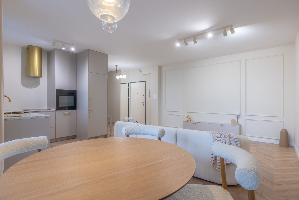 -Salon z aneksem kuchennym i wyjściem na duży balkon