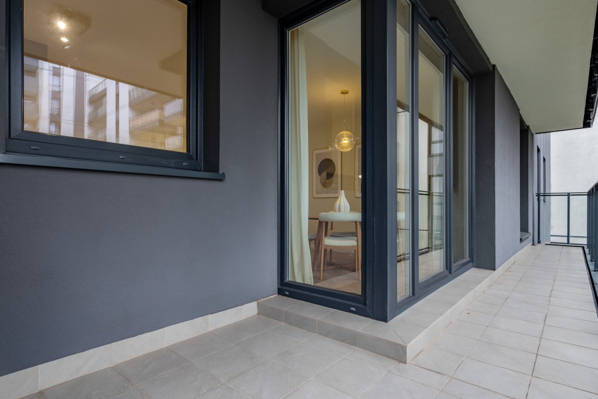 -Duży balkon z miejscem na stół lub strefę relaksu