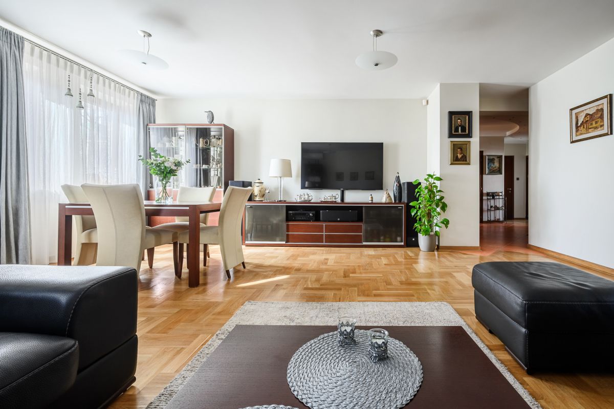 Na sprzedaż komfortowe, funkcjonalne mieszkanie o powierzchni 139,70 m², zajmujące całe piętro kameralnego budynku przy ul. Witwickiego 6 na warszawskim Gocławiu. Nieruchomość położona jest na zamkniętym osiedlu, w jego cichej, końcowej części - wzdłuż kanałku, w otoczeniu niskiej zabudowy jednorodzinnej i kameralnych budynków. Lokalizacja zapewnia poczucie prywatności oraz klimat zbliżony do mieszkania w domu.