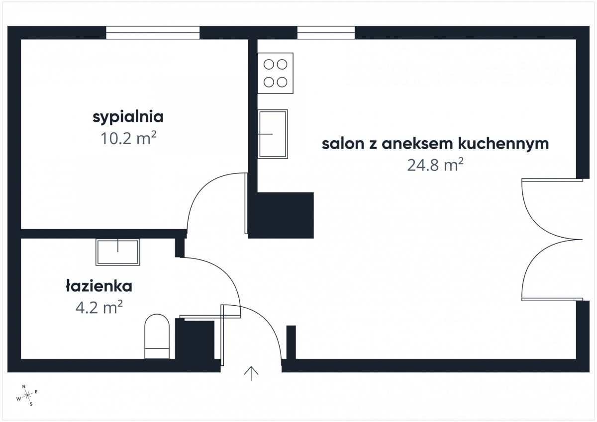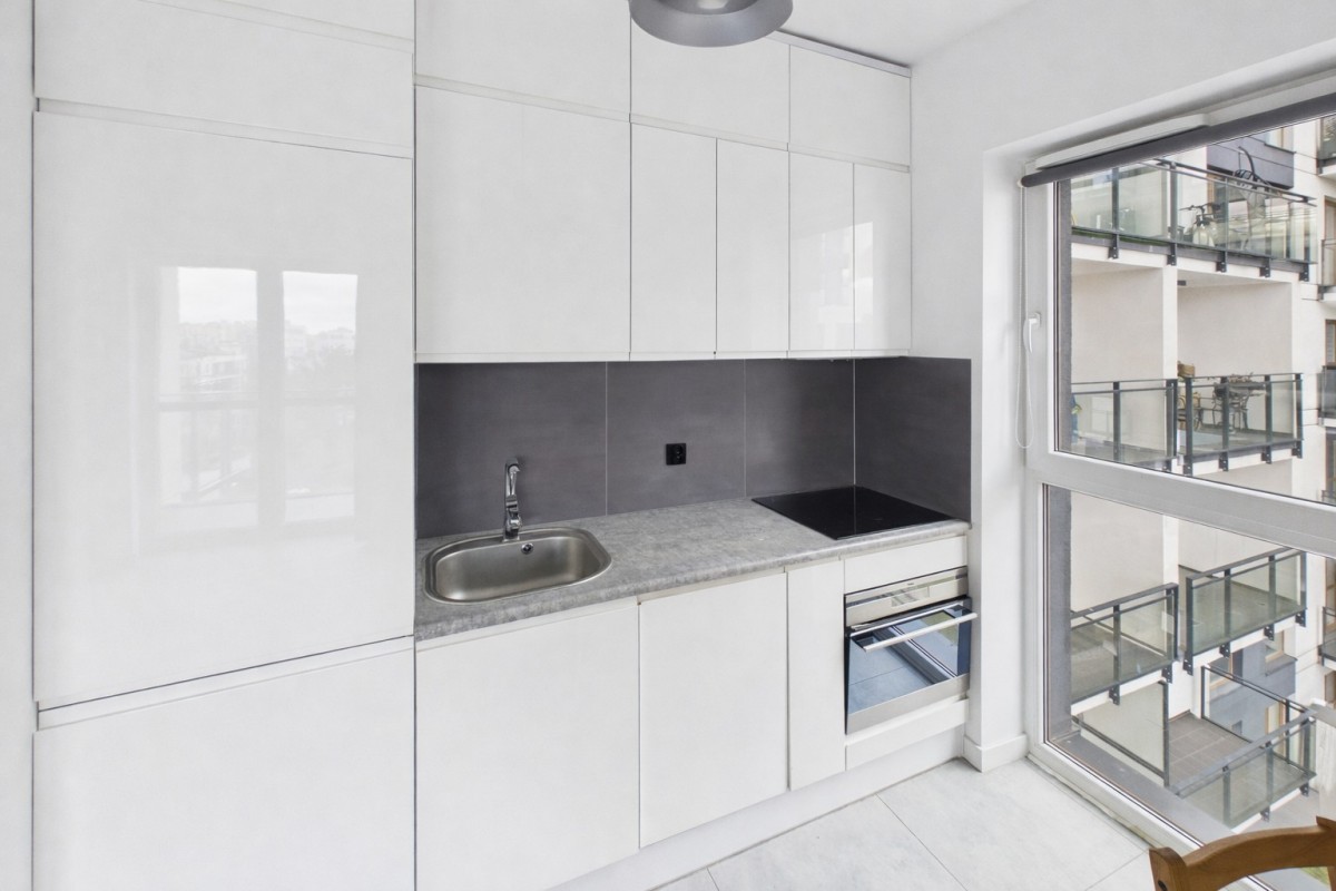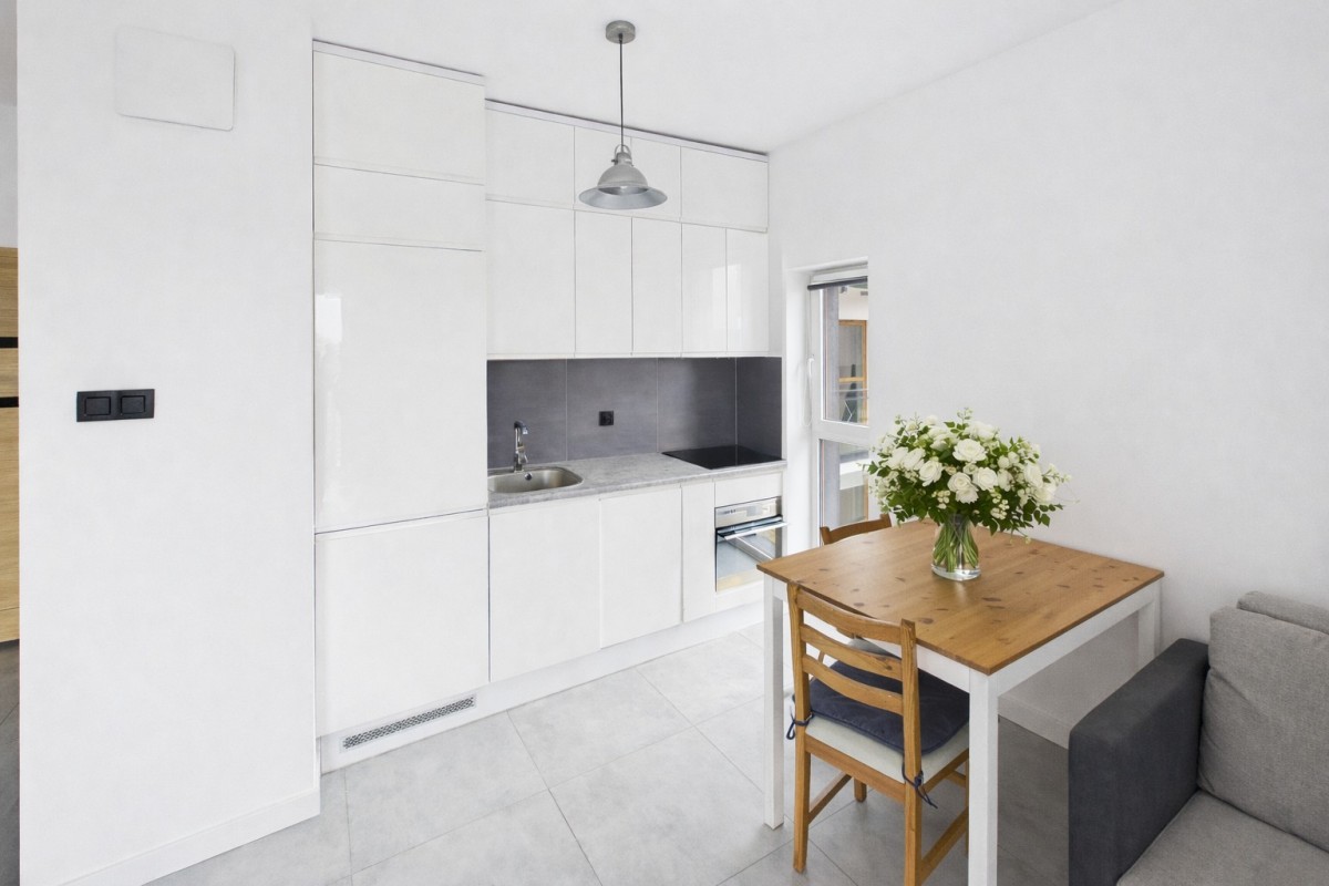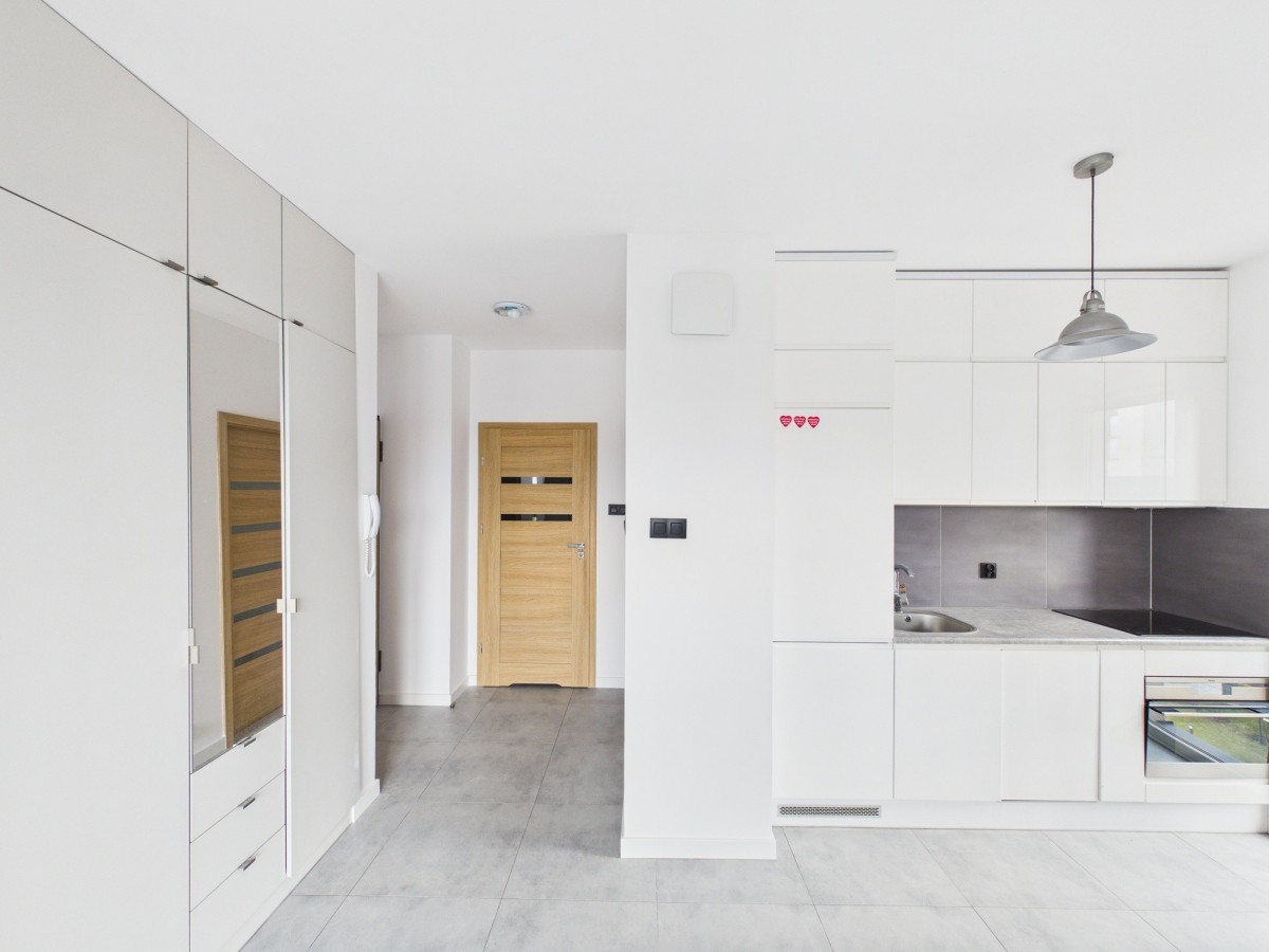 • salon z aneksem kuchennym i wyjściem na balkon