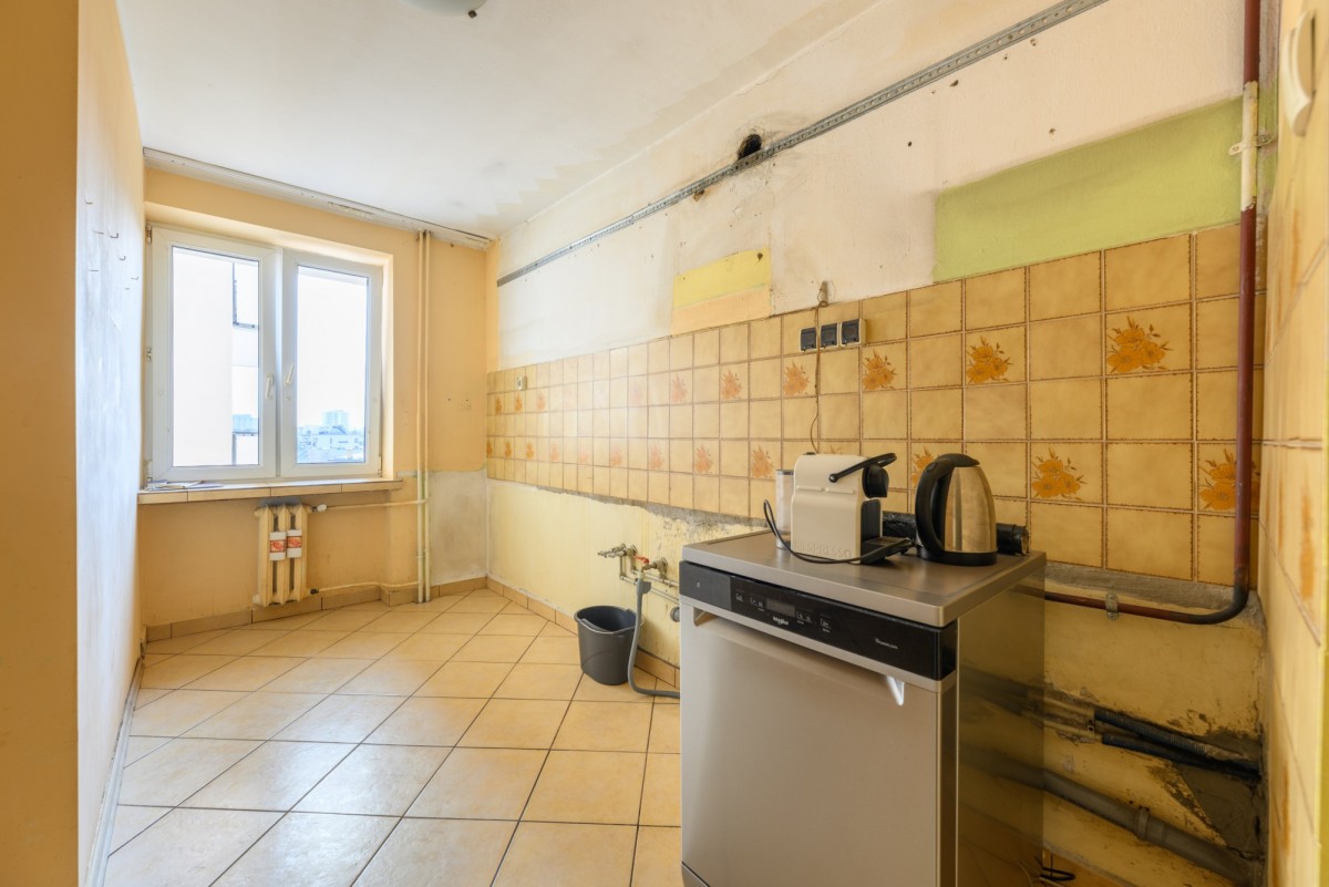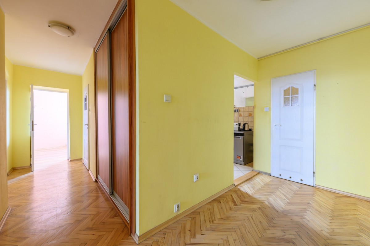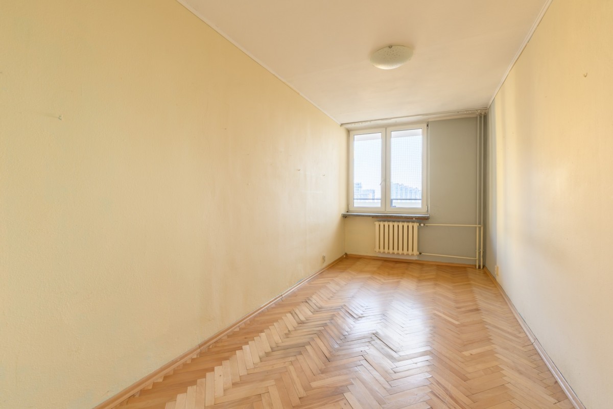 Mieszkanie znajduje się na 6. piętrze 10-piętrowego budynku z dwiema windami. Posiada dwustronną ekspozycję wschód-zachód, dzięki czemu jest jasne, dobrze doświetlone i oferuje widok na miasto oraz okoliczną zieleń. Lokum składa się z 3 pokoi, osobnej kuchni z oknem, łazienki z prysznicem, osobnego WC oraz garderoby. Do mieszkania przynależy balkon, piwnica do wyłącznego korzystania oraz komórka współdzielona z sąsiadem na tym samym piętrze. Mieszkanie do generalnego remontu z dużym potencjałem aranżacyjnym - idealne dla osób chcących stworzyć wnętrze według własnego stylu życia.