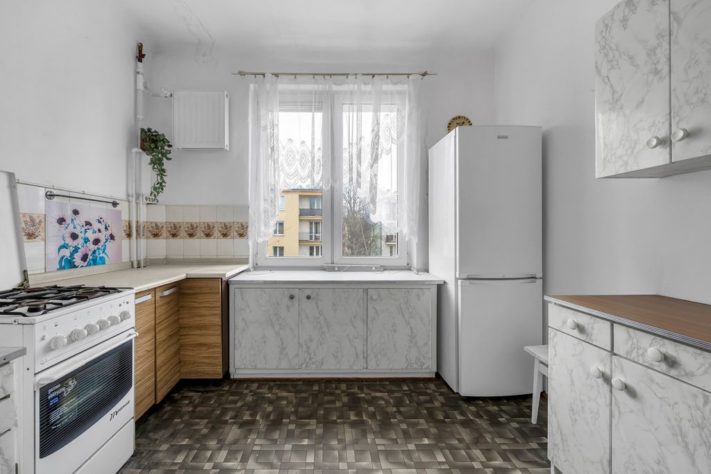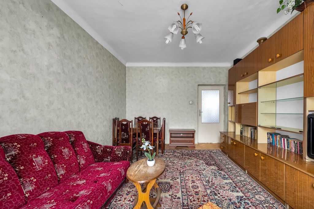 Nieruchomość jest w stanie do remontu, co pozwala nowemu nabywcy na aranżację według własnych potrzeb i uznania. Po przeniesieniu kuchni do salonu, istnieje możliwość uzyskania 3 pokoju.
