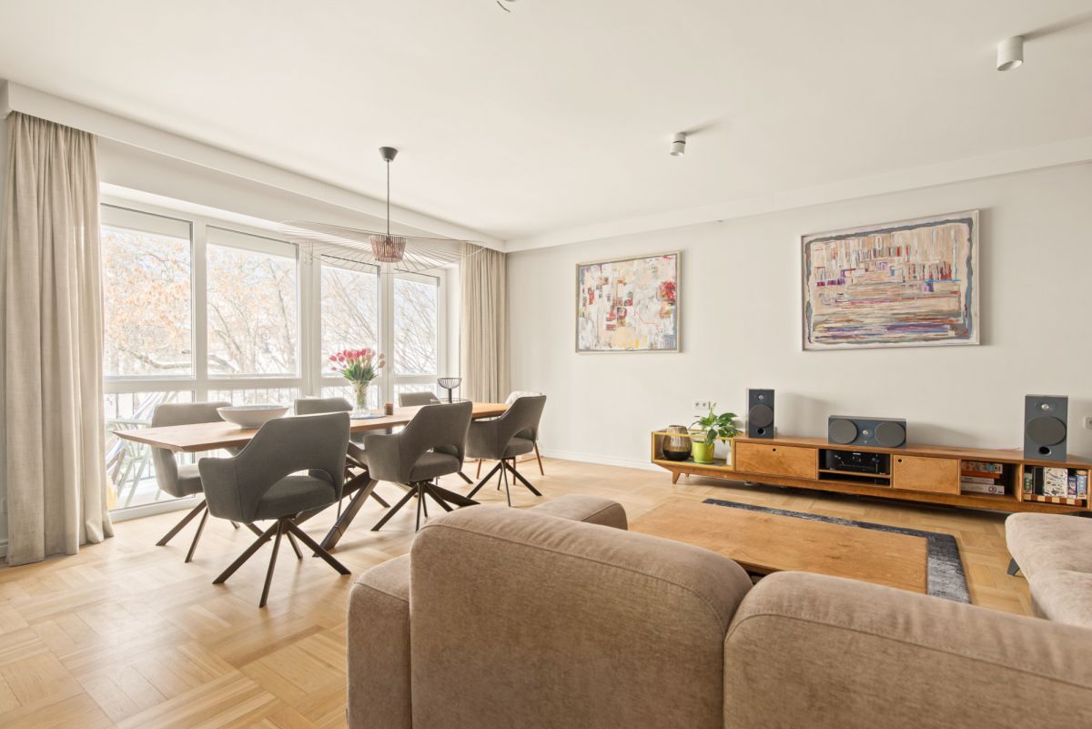 Mieszkanie na trzy strony świata w stanie idealnym, gotowe do wprowadzenia. Piękne dębowe podłogi, w łazienkach i części kuchennej podgrzewana płytka gresowa. Do wszystkich pomieszczeń wchodzimy przez drzwi bezprzylgowe. W mieszkaniu znajduje się delikatna, elegancka sztukateria. Duże, dźwiękoszczelne okna dają poczucie dodatkowej przestrzeni a za nimi widok na drzewa i typową dla starej Saskiej Kępy zabudowę wraz z klimatycznymi latarniami. W salonach znajdują się rzutniki multimedialne wraz z systemem nagłośnieniowym. Mieszkanie wymarzone dla rodziny. Oferta dotyczy mieszkania wraz z meblami!
