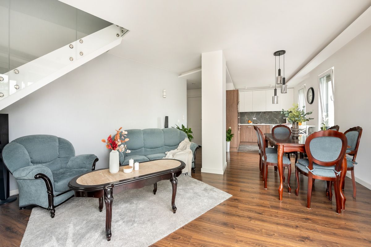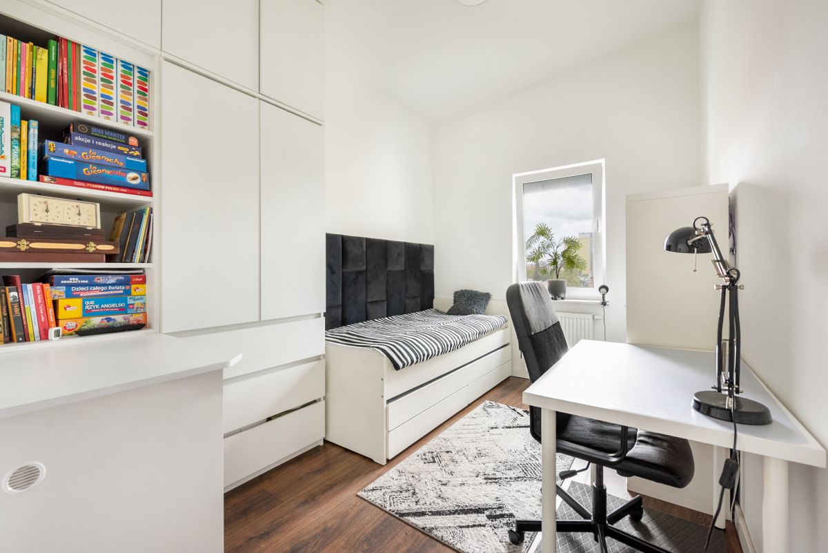 Mieszkanie jest wyjątkowo przestronne i pełne naturalnego światła. Trzyszybowe okna zapewniają skuteczne wyciszenie. Pomieszczenia są ustawne i pozbawione skosów, co zwiększa funkcjonalność.
