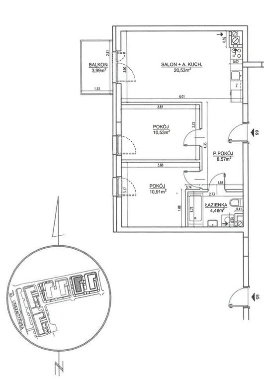 - z oknami od zachodniej strony - salon z balkonem - widok na sąsiednie bloki, kuchnia, pokój, sypialnia,