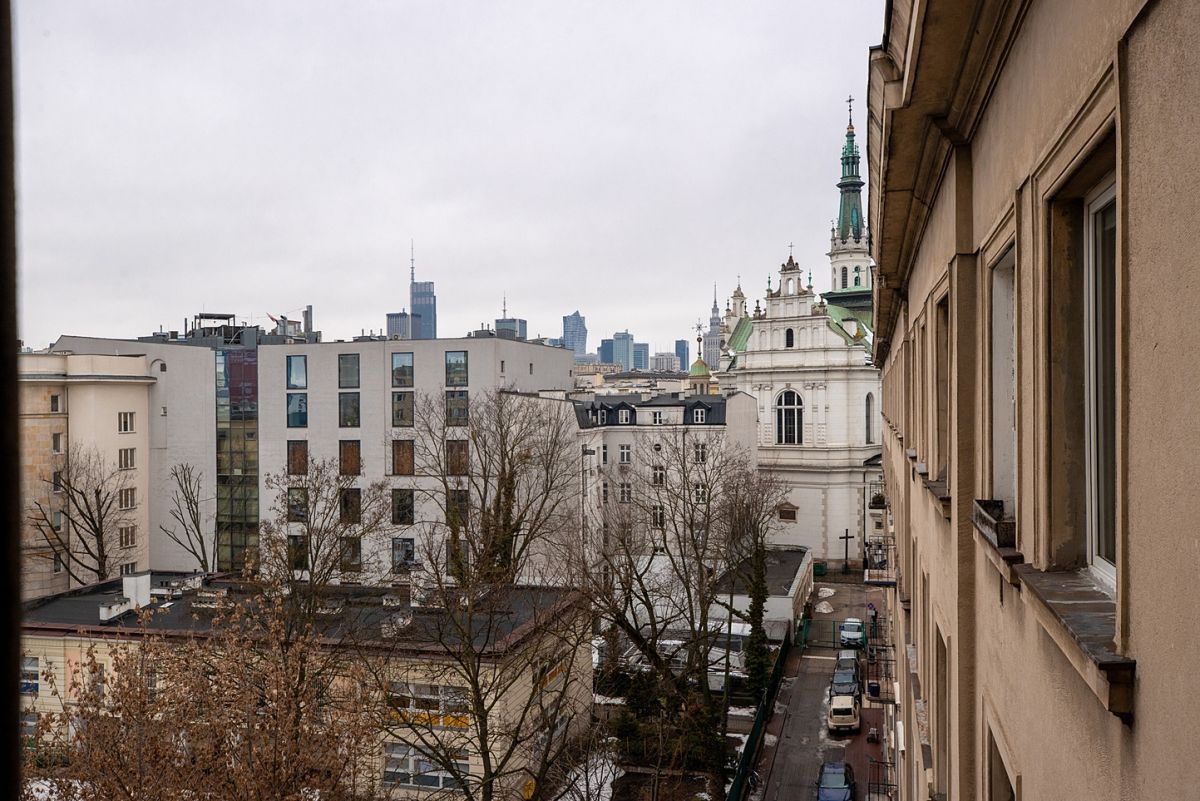 - okna mieszkania od strony sypialni oraz kuchni wychodzą na cichą stronę do podwórka (Plac Zbawiciela)