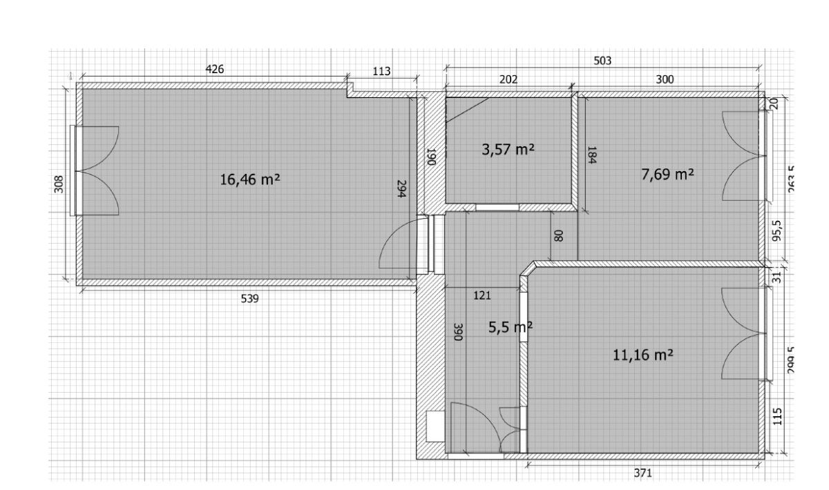 *Stan: do generalnego remontu. Ściana między łazienką a przedpokojem została wyburzona, ściana granicząca z małym pokojem, kuchnią i przedpokojem wyburzona, ściana między kuchnią a małym pokojem przesunięta, co otwiera drogę do własnej, optymalnej aranżacji.