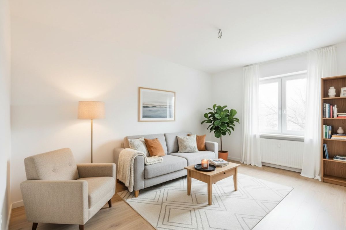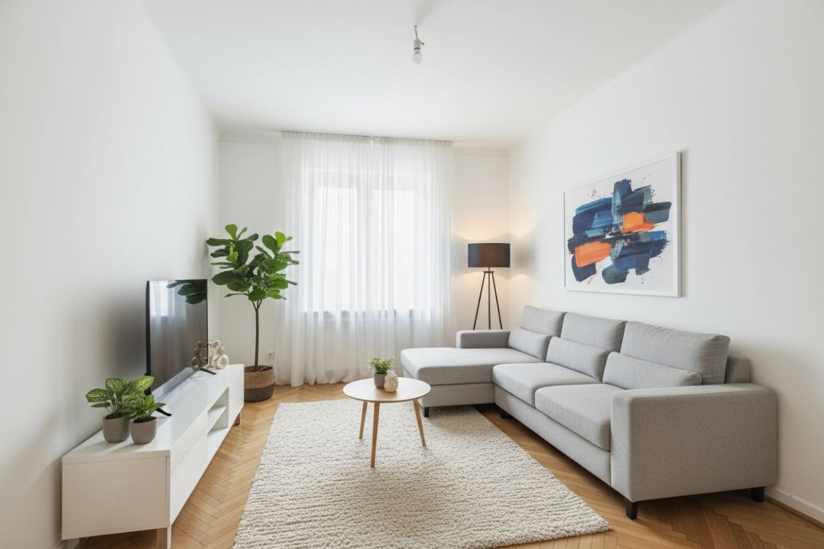 Do oferty dołączono zdjęcia z przykładową wizualizacją, które prezentują potencjał mieszkania po wykończeniu.