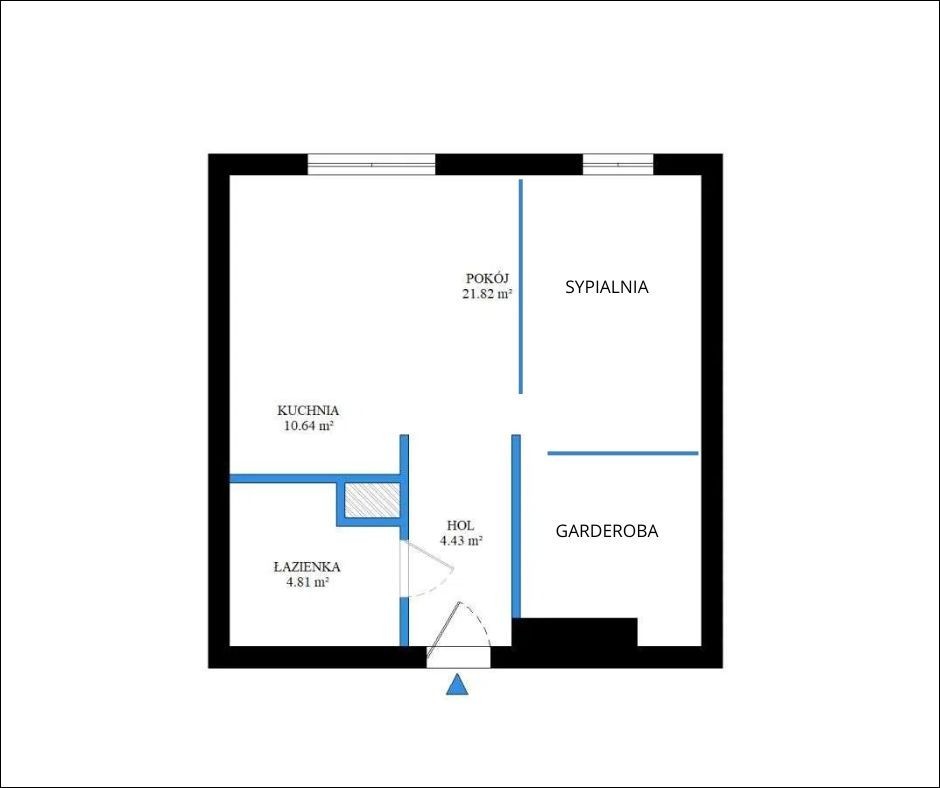 Wnętrze zostało zaprojektowane jako otwarta, harmonijna przestrzeń, w której znajduje się jasny salon połączony z aneksem kuchennym w pełnej zabudowie (wyposażonym w sprzęt AGD), przedpokój, komfortowa łazienka oraz wyraźnie oddzielona część sypialniana. Dzięki funkcjonalnemu układowi istnieje możliwość łatwego wydzielenia osobnej sypialni - np. za pomocą lekkiej ścianki działowej lub drzwi przesuwnych, co pozwala dostosować wnętrze do indywidualnych potrzeb i stylu życia.