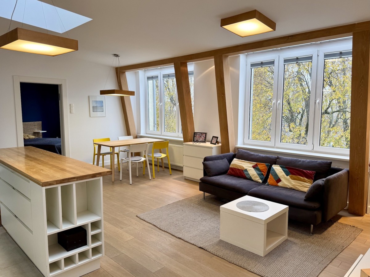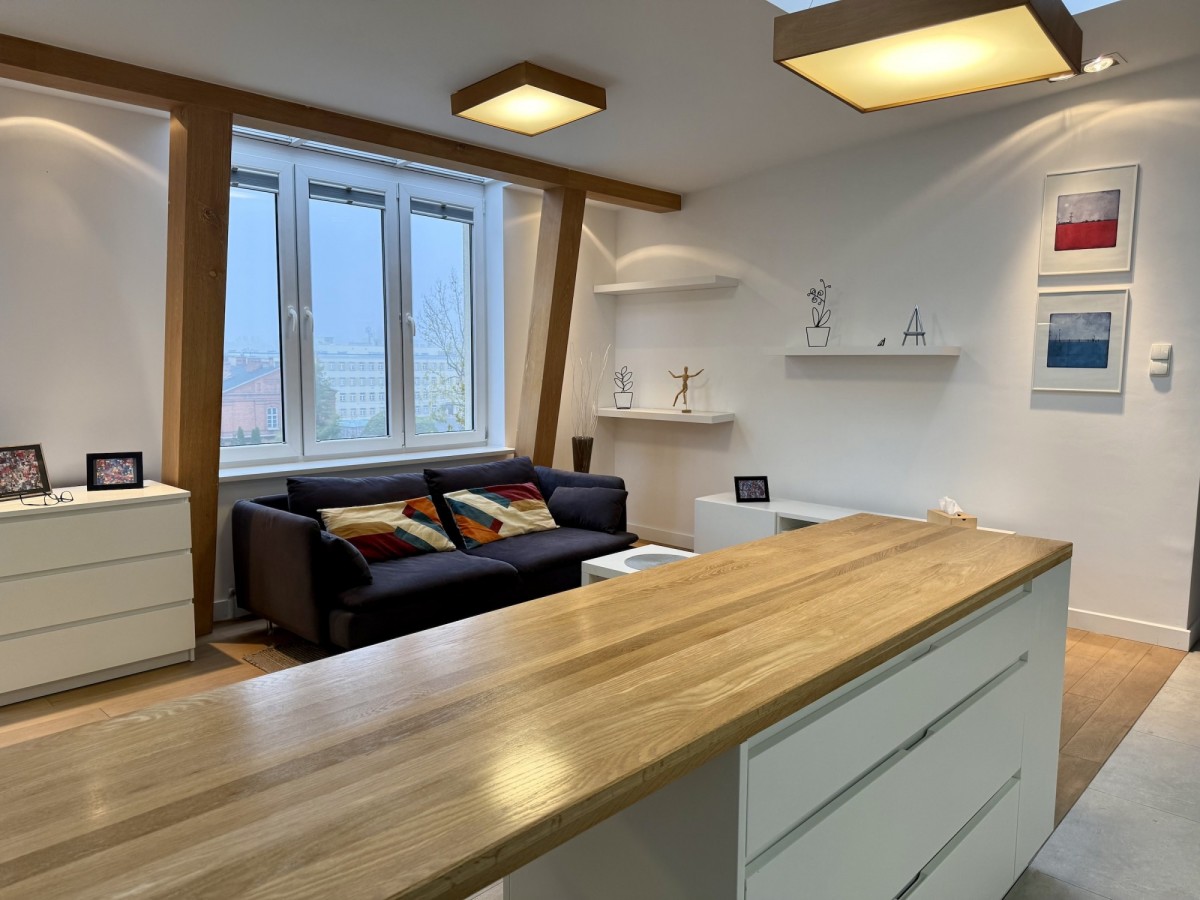 Położony na ostatnim piętrze (4) kamienicy z 1938 roku, która w 2014 r została gruntownie wyremontowana, a poziom na którym znajduje się apartament, został wybudowany.