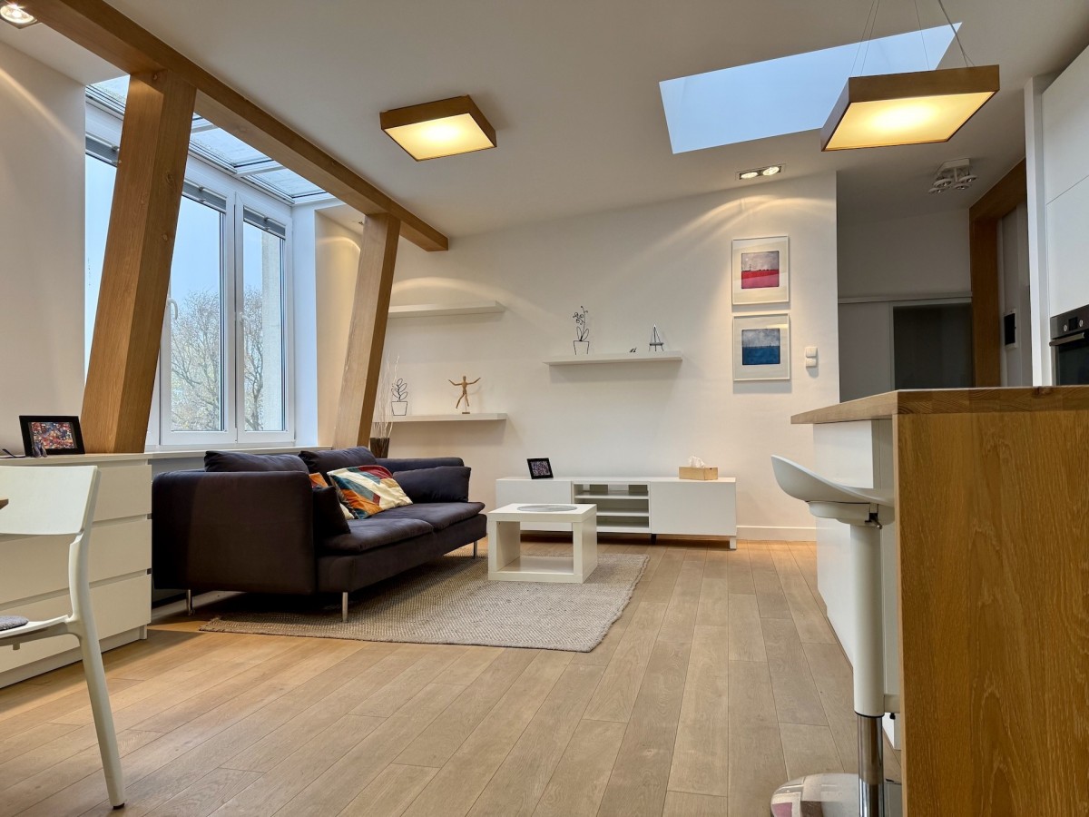 Projekt apartamentu wykonany przez architekta, obejmuje przestronne wejście i duże otwarte przestrzenie. Wysokość do sufitów i wykończenie drewnianymi belkami nośnymi dodaje mu lekkości.