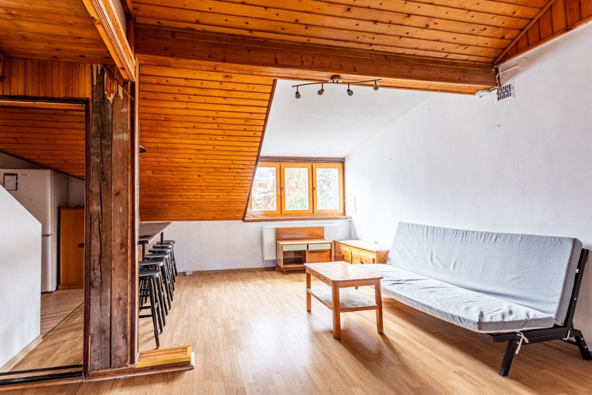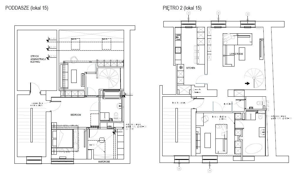 Apartament składający się z dwóch oddzielnych poziomów do remontu i do połączenia wewnętrzną klatką schodową składa się z: