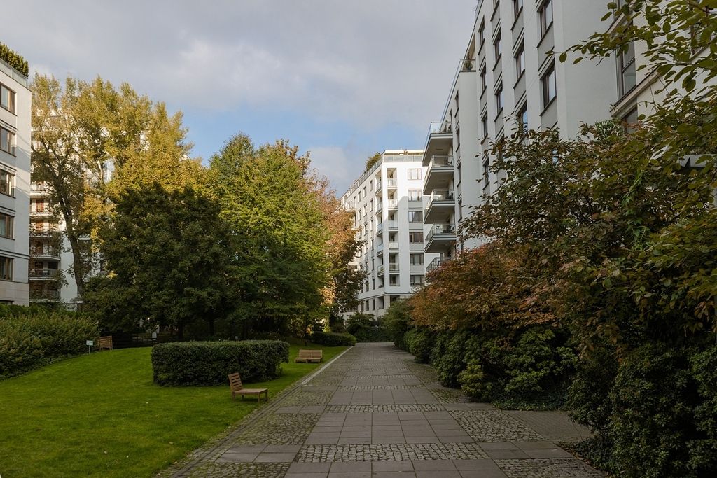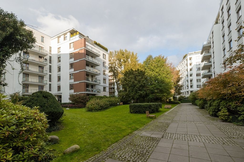Patria to jeden z najbardziej pożądanych adresów na warszawskim Powiślu. Kompleks składa się z czterech eleganckich budynków i został zaprojektowany w klimatycznym, parkowym charakterze okolicy (ul. Książęca i Kruczkowskiego). Mieszkańcy mogą korzystać z zadbanego, zamkniętego i strzeżonego terenu – zielone patio osiedla z fontanną, leżakami i alejkami jest idealnym miejscem wytchnienia w centrum miasta. Poczucie bezpieczeństwa podnosi całodobowy monitoring, ochrona oraz elegancka recepcja/concierge od strony ul. Kruczkowskiego.