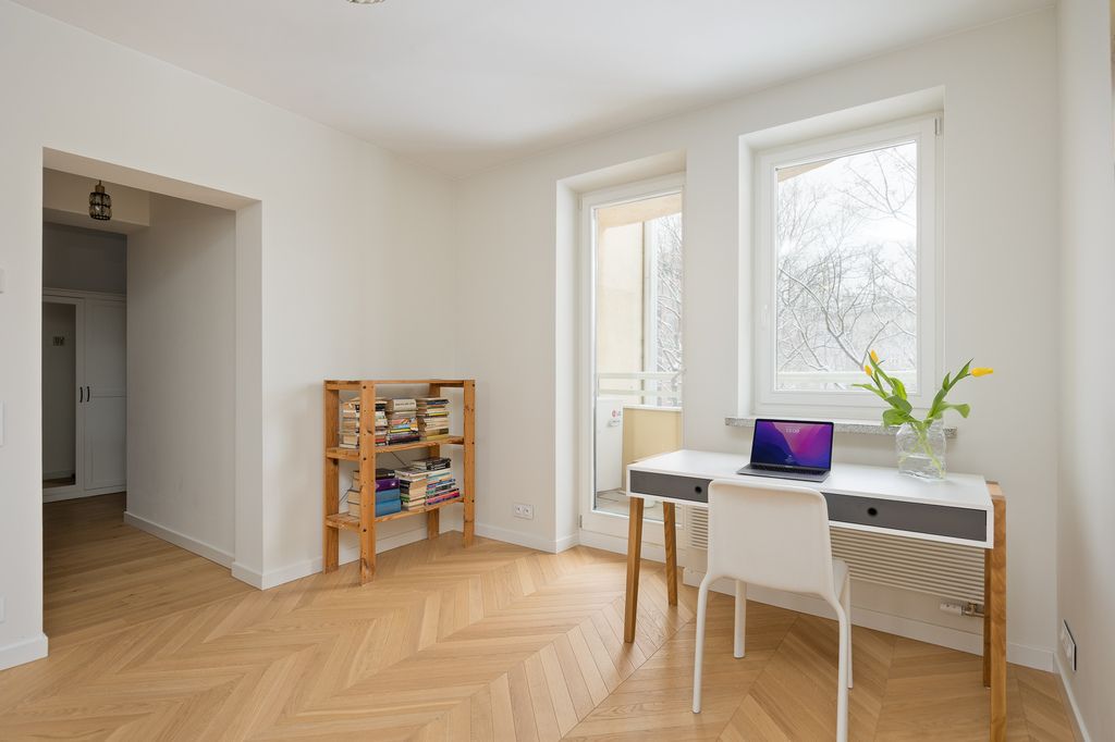 The Heart of Śródmieście — Between History and Greenery: Ptasia StreetThe apartment at Ptasia 2, located within the gated community Ptasia–Zimna, is a true gem in the very center of Warsaw. Just a few steps from Bankowy Square, it offers the perfect balance between urban energy and peaceful surroundings. This central yet calm pocket of the city provides both vibrancy and charm, enhanced by the proximity of nature.
