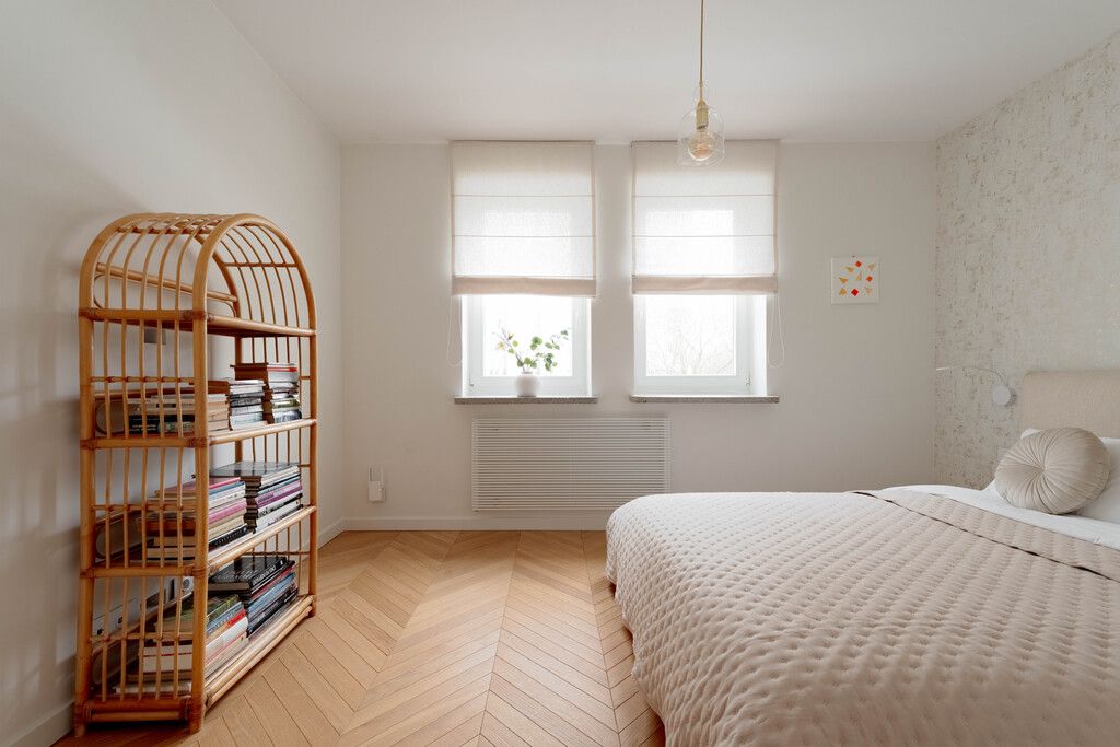 Strefa prywatna obejmuje przestrzeń na garderobę oraz sypialnię. Wnętrze wykończone zostało z najwyższej jakości materiałów – nowe dębowe podłogi, designerskie grzejniki, klimatyzacja oraz drewniane, trzyszybowe okna.