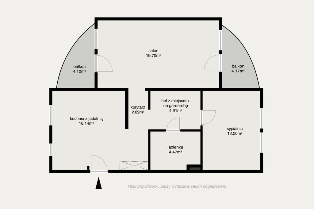 - Słoneczny salon: 19,70 m² z dwoma balkonami (4,17 m² i 4,10 m²)