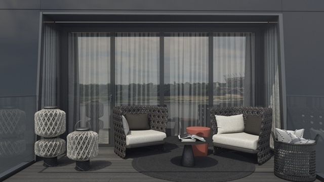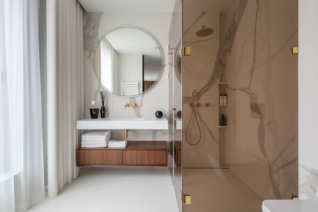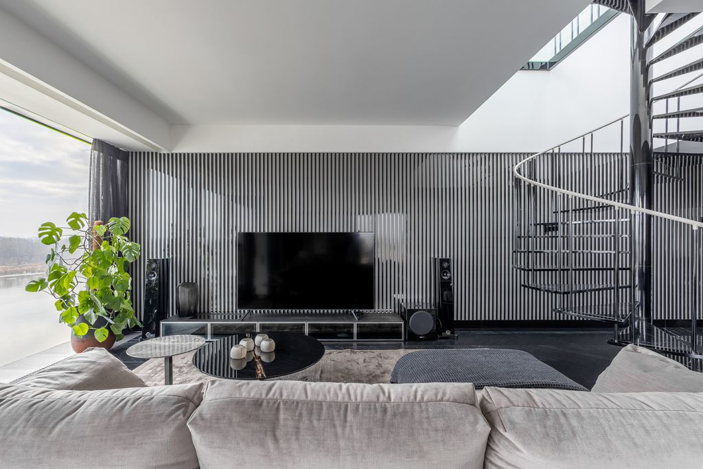 Wnętrza wykończono materiałami najwyższej jakości: naturalne drewno, kamień, panoramiczne okna o podwyższonych parametrach akustycznych i termicznych. Kuchnia wyposażona w sprzęt najlepszych światowych marek. Jasne i przestronne pomieszczenia zachwycają elegancją i funkcjonalnością.