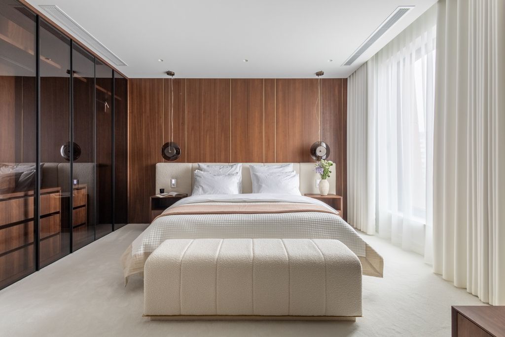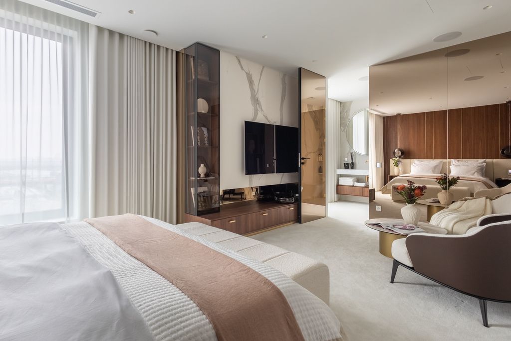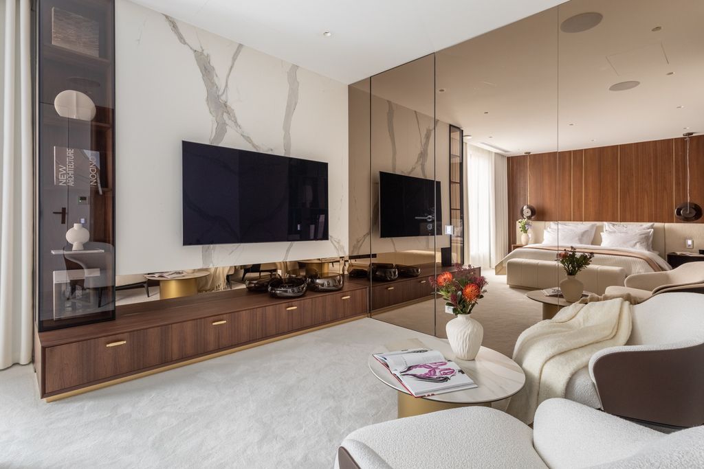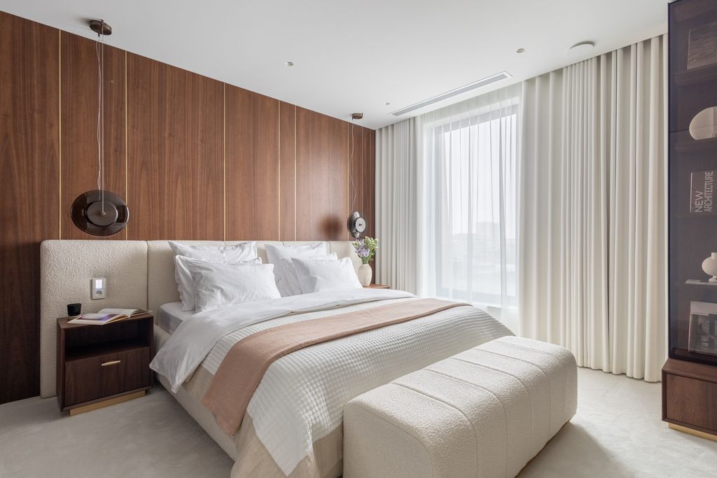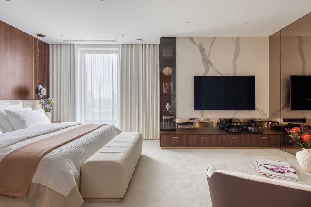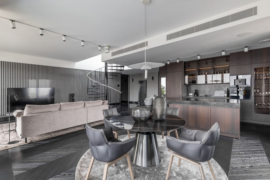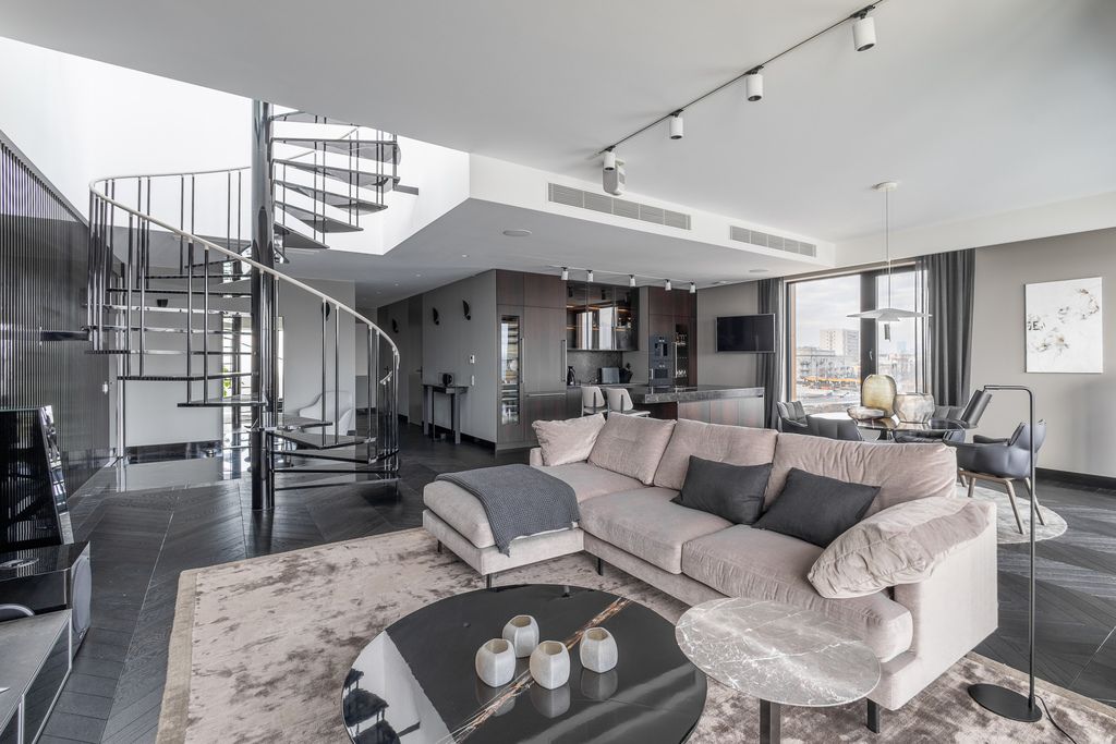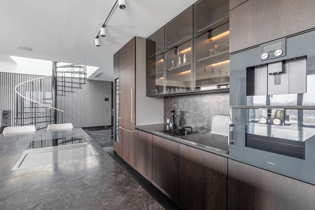 Top quality materials have been used to finish the interiors: wood, natural stone, the kitchen has been equipped with appliances from the world's top brands. Panoramic floor-to-ceiling windows (with higher standard of acoustic and thermal insulation) make the rooms bright, well-lit and give an extraordinary sense of space.