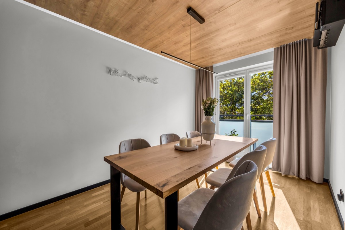 Apartament został wykończony w wysokim standardzie, z dbałością o każdy detal. Wysokiej jakości materiały oraz ponadczasowa aranżacja tworzą harmonijną przestrzeń idealną do życia. Pomieszczenia są klimatyzowane.