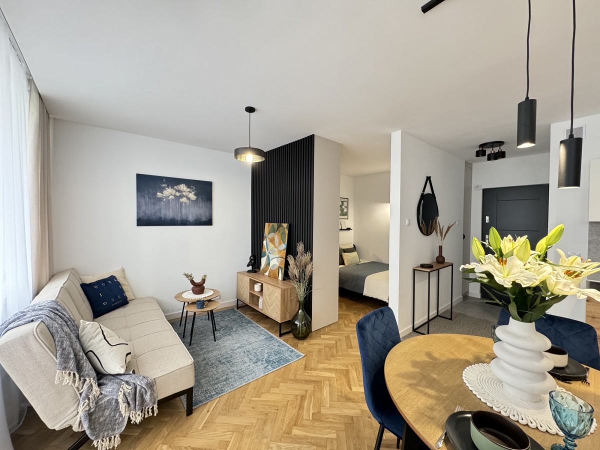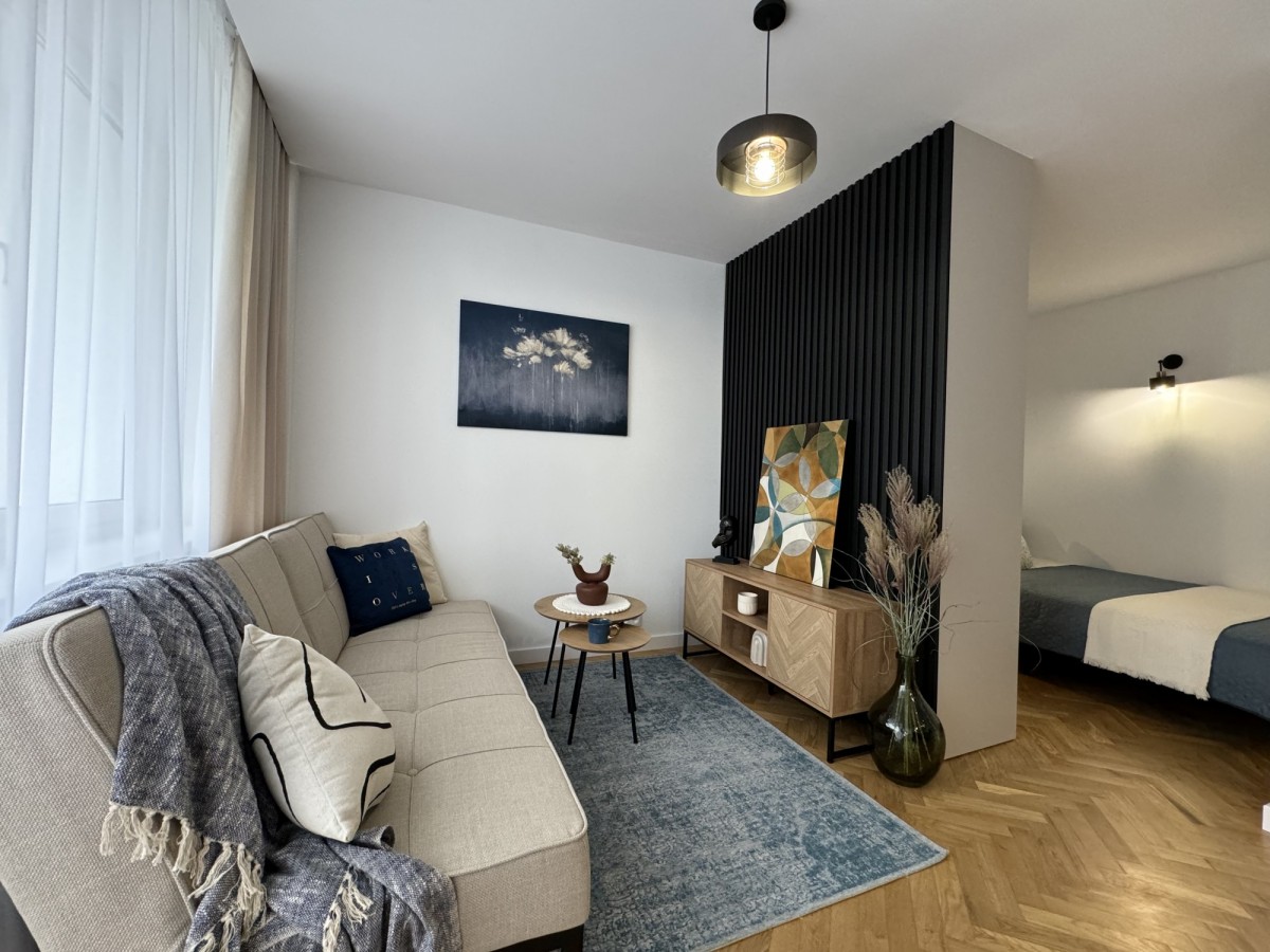 Oferuję na sprzedaż funkcjonalne studio z wydzieloną sypialnią o pow. 33,5 m2, usytuowane na 9-tym piętrze, z przepięknym widokiem na starówkę, obok stacji metra Ratusz Arsenał - przy Al. Solidarności. Po kapitalnym remoncie, zaaranżowane nowocześnie oraz funkcjonalnie. Mieszkanie nie było jeszcze przez nikogo użytkowane.