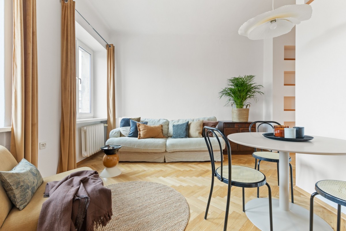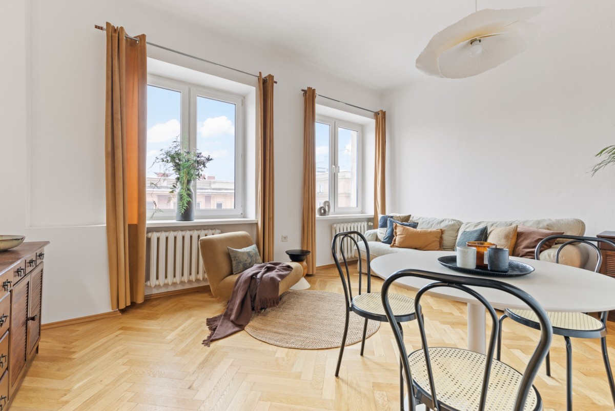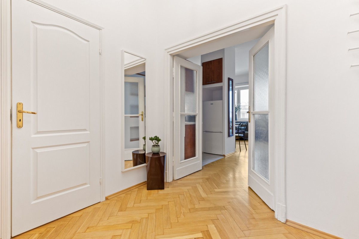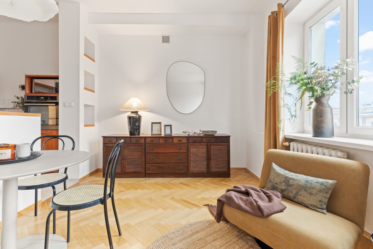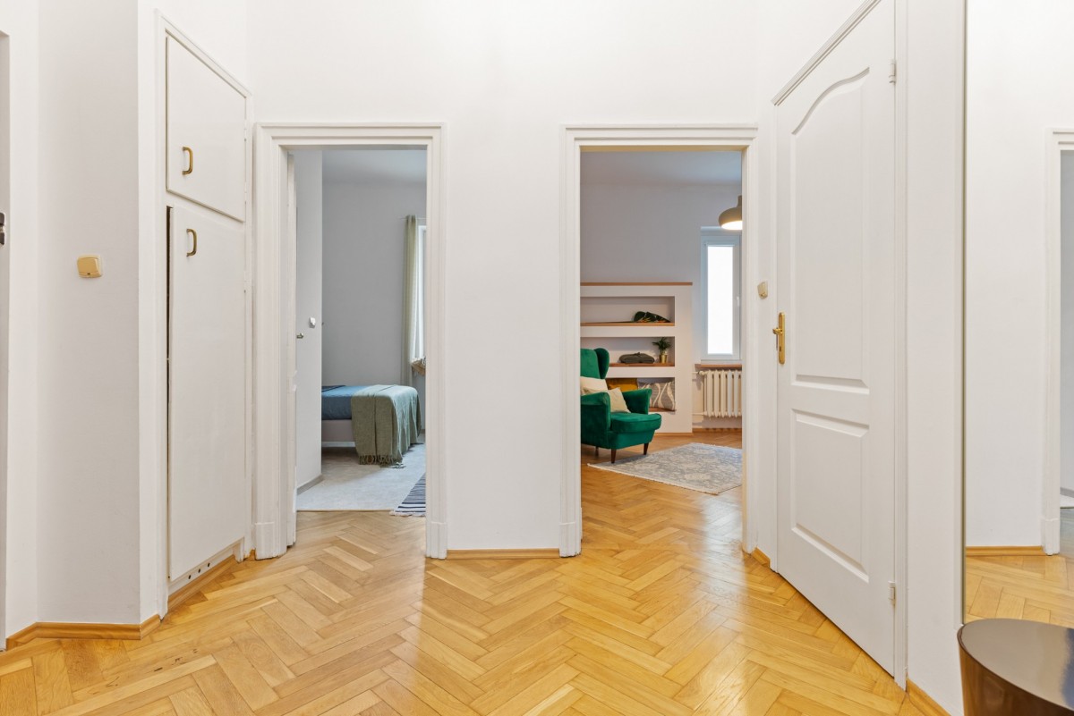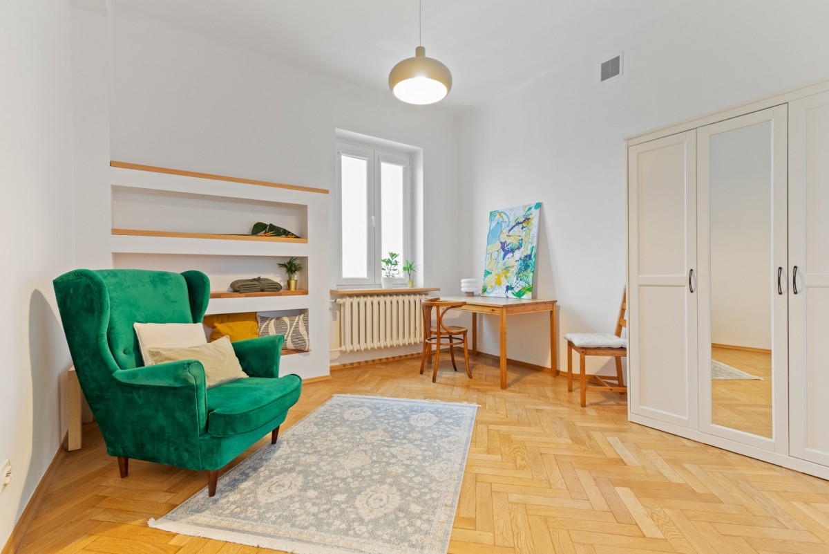Mieszkanie cechuje funkcjonalny kamieniczny układ pomieszczeń oraz duży potencjał aranżacyjny - wysokość ponad 3m. Lokal zachowuje miejski, kameralny charakter, typowy dla tej części Warszawy.