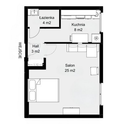 - jasny pokój dzienny z ekspozycją południowo - zachodnią (ok. 25 m2),