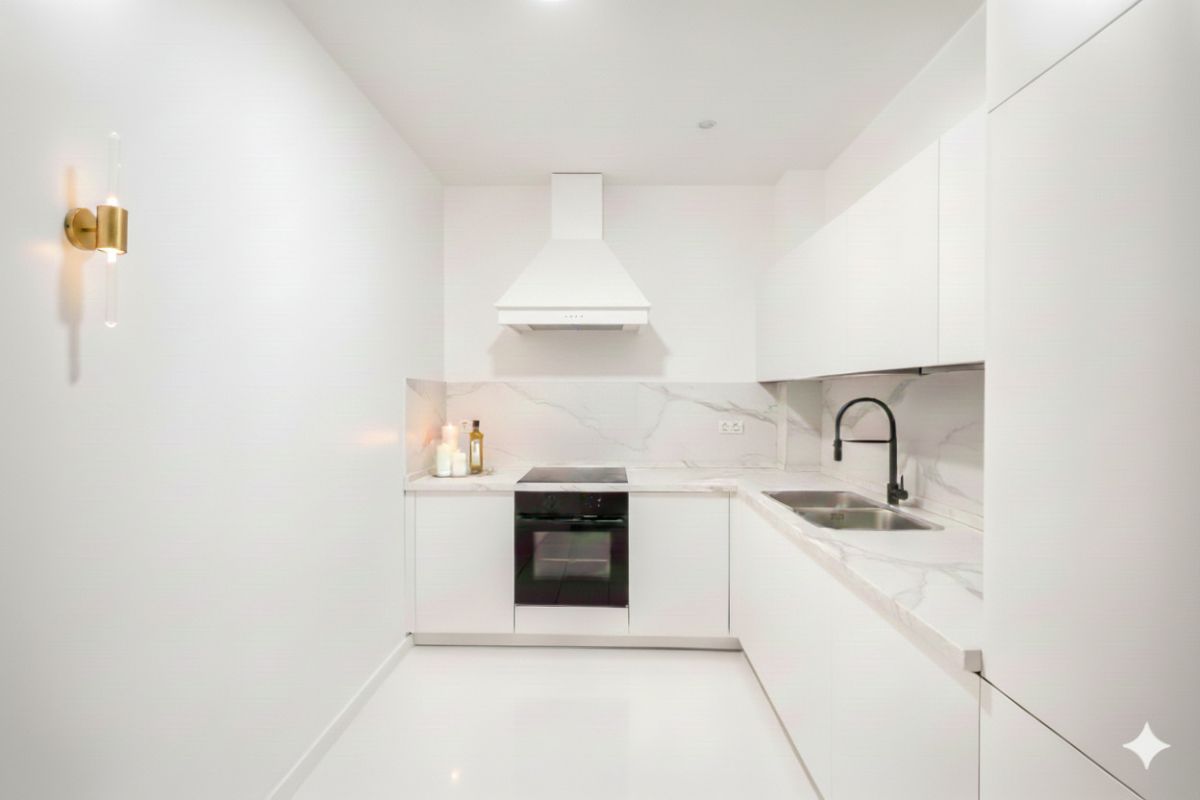 Mieszkanie ma bardzo funkcjonalny układ. Wszystkie okna wychodzą na patio, dzięki czemu w lokalu jest cicho mimo centralnej lokalizacji.