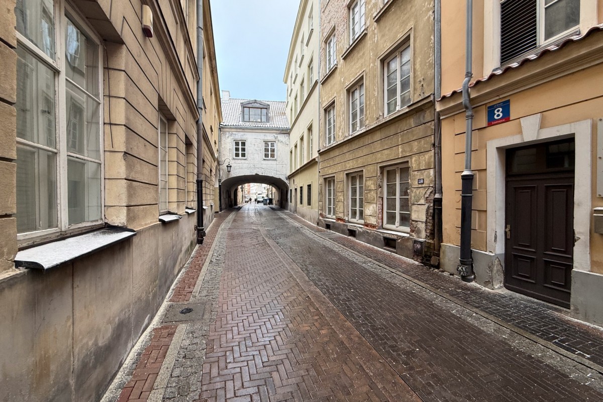 Mieszkanie mieści się w przedwojennej kamienicy, typowej dla zabudowy Starego Miasta. Kamienica zachowała swój historyczny charakter, a wejście prowadzi przez bramę do wewnętrznego dziedzińca, który pełni funkcję kameralnej, zielonej przestrzeni dla mieszkańców. Ogrzewanie pochodzi z sieci miejskiej.