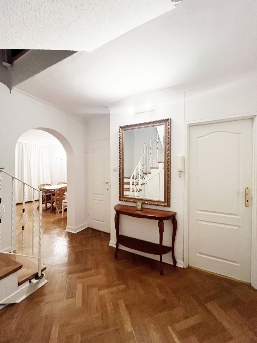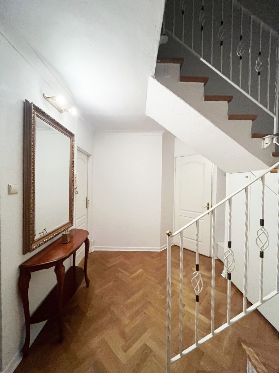 Two-level, apartment located in the heart of the city at Plac Bankowy, in the vicinity of Mirowski Park and Saxon Garden, in a place where modernity combines with the history of the capital: nearby the Old Town, Royal Castle, Presidential Palace and hotels: Bristol, Westin, Radisson, Raffles Europejski, art galleries, headquarters of international corporations and banks. Unique location surrounded by parks and greenery. Located on the so-called Saxon Axis right next to the historic Lubomirski Palace, which in 1970 was moved from its original location in such a way as to cover the Gwardia Hall, and its colonnade closed the perspective of the main avenue of the Saxon Garden.
