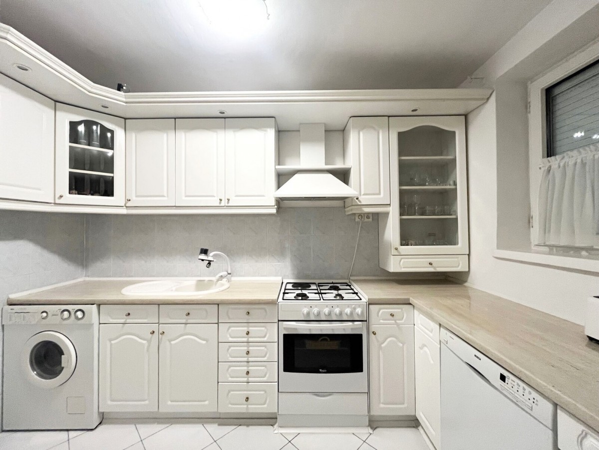 - zabudowa kuchni: pralka, kuchenka z piekarnikiem, lodówka, okap;