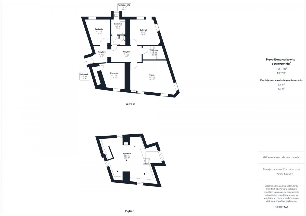 Metraż: 126 m² (90 m² + 36 m² drugi poziom)