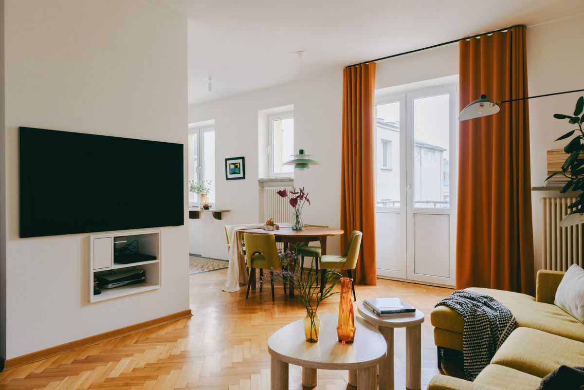 The 83 sqm apartment was designed and finished according to an original project by architect Ewa Lewandowska, with full respect for the building’s modernist character and its historic fabric. The layout is clear, functional, and focused on everyday comfort. It is perfectly suited both for a single occupant, a couple, or as an elegant city residence.
