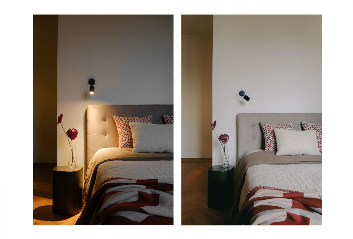 By the window, a deepened sill has been designed as an intimate breakfast table, overlooking the green courtyard of the building. The sunny exposure combined with the apartment’s distance from busy streets ensures interiors that are both bright and exceptionally quiet.