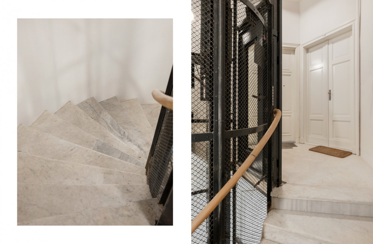 Apartament o powierzchni 104 m² znajduje się w 7- kondygnacyjnej, przedwojennej kamienicy.