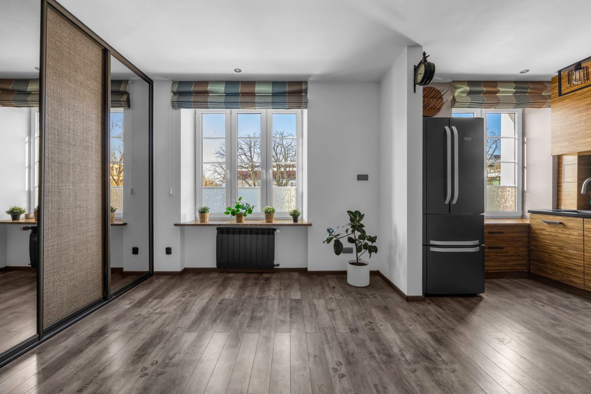 - Pokój dzienny z aneksem kuchennym i pojemną szafą