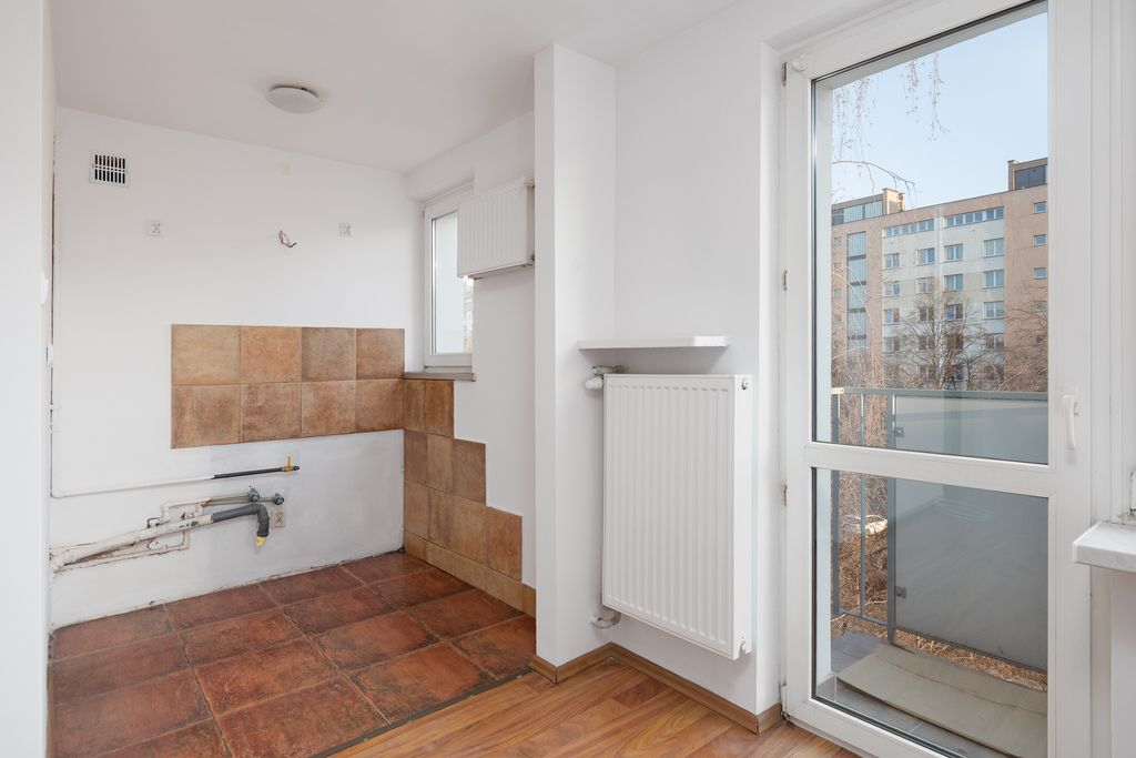 - przestrzeń przygotowana pod kuchnię lub aneks – brak starej zabudowy oznacza brak kosztów jej demontażu przy remoncie,