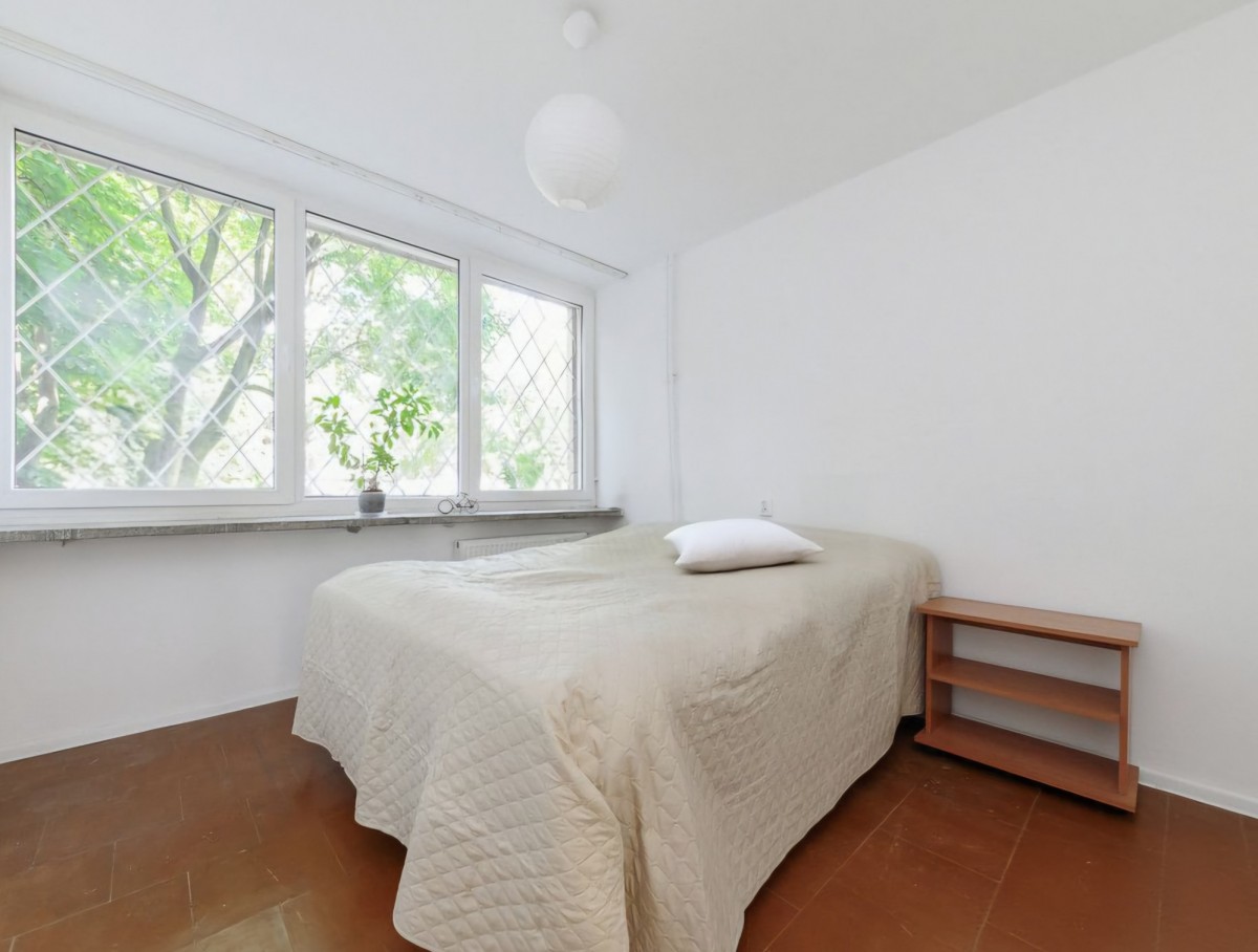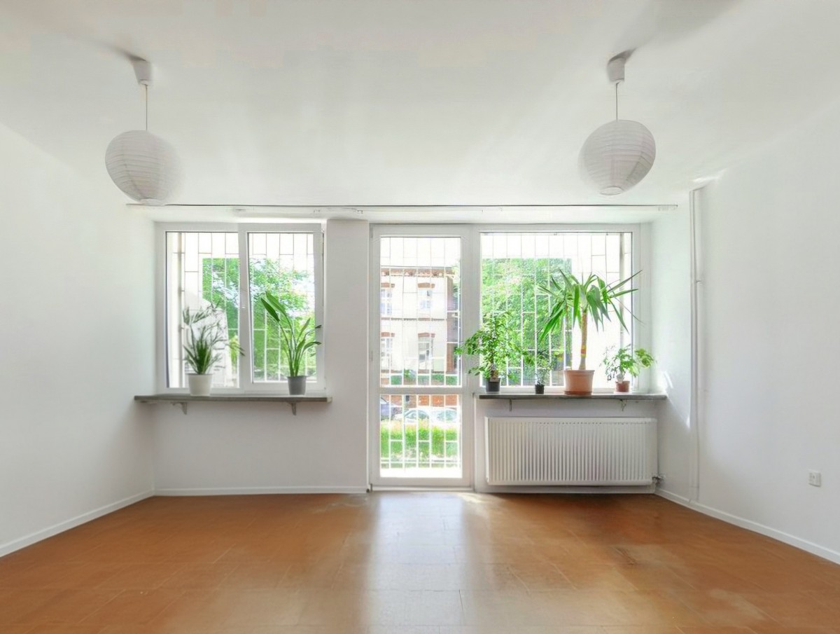 Dwustronność: Słoneczny salon z loggią (3,5 m²) od strony południowej oraz sypialnia i oddzielna kuchnia od strony północnej, z widokiem na ciche, zielone podwórze.