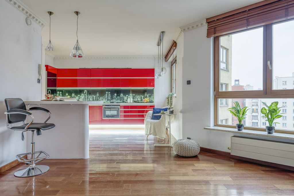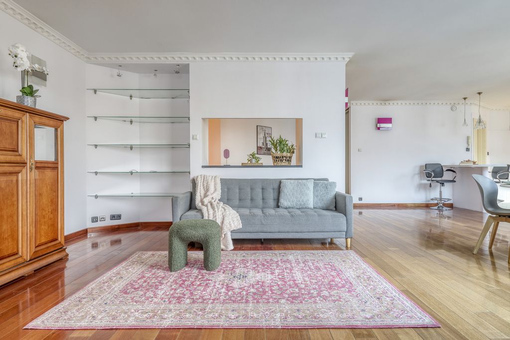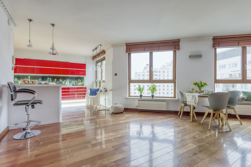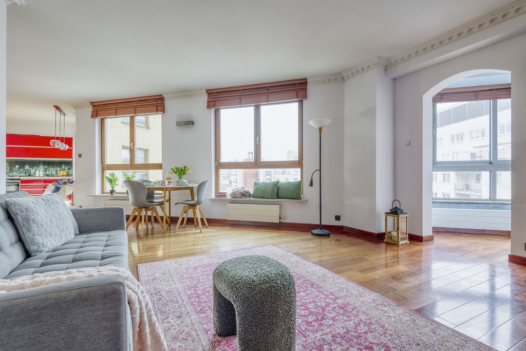 Usytuowany na 7. piętrze, oferuje panoramiczny widok na Warszawę oraz funkcjonalny układ pomieszczeń idealny dla rodziny lub osób pracujących zdalnie.