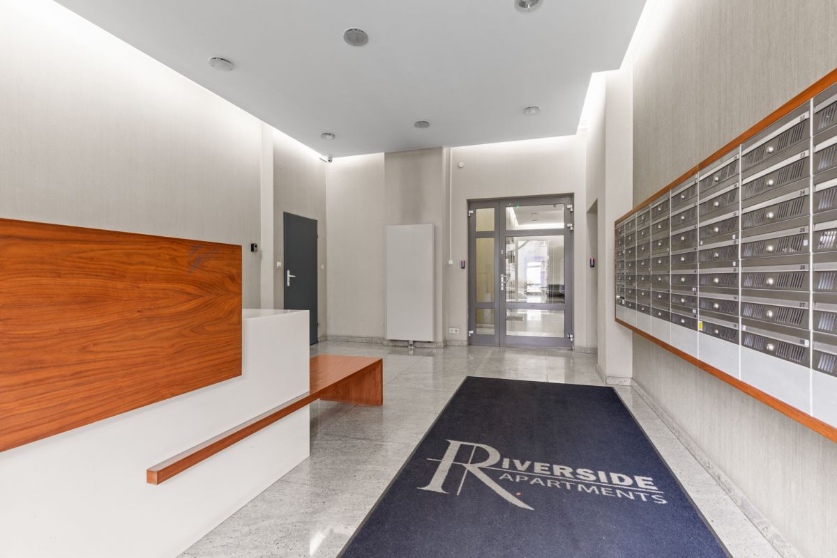 Riverside Apartments to nowoczesny projekt mieszkaniowy, zrealizowany na warszawskim Powiślu, przy ul. Fabrycznej. Kameralna zabudowa, eleganckie wykończenia i przemyślane rozwiązania zapewniają wygodę i bezpieczeństwo mieszkańców. 7-piętrowy budynek mieści 65 apartamentów, 2 windy na klatce. Do dyspozycji mieszkańców jest rowerownia.