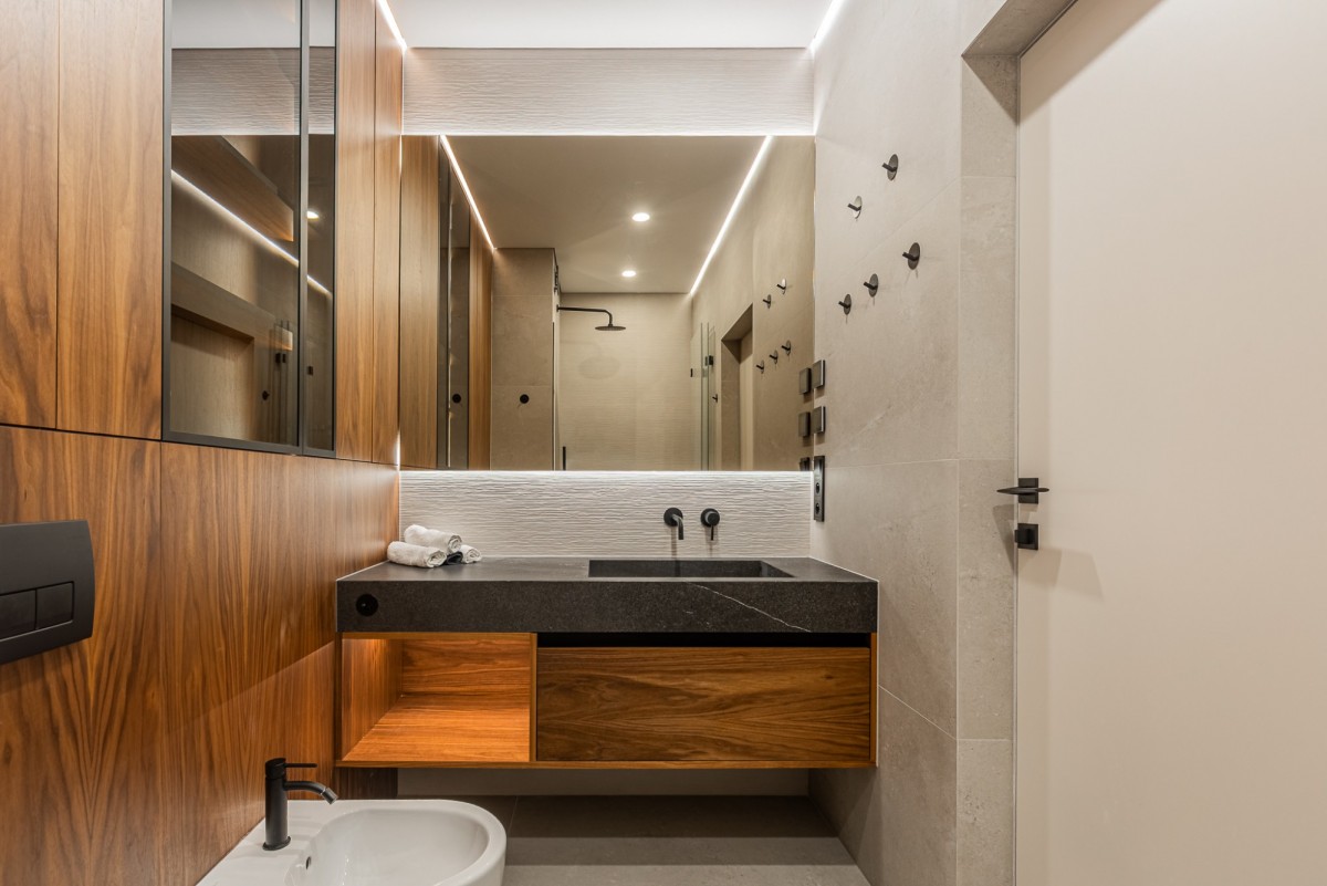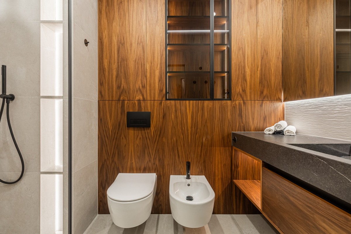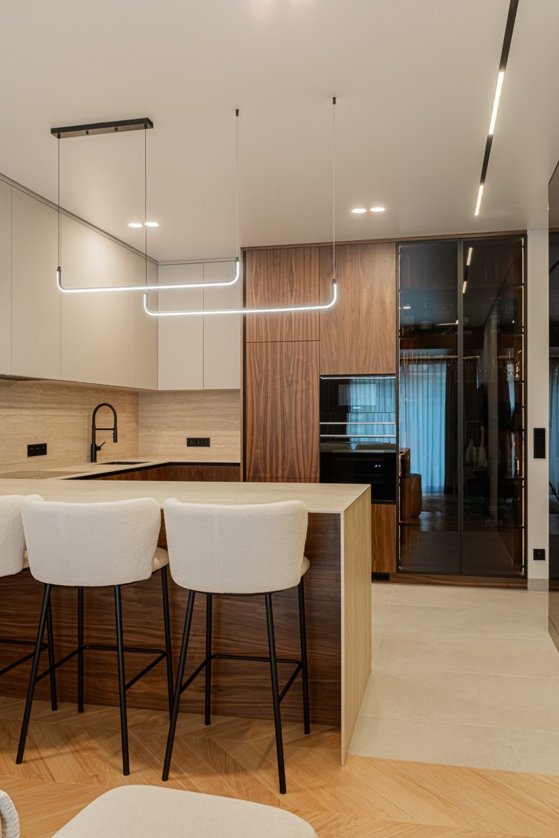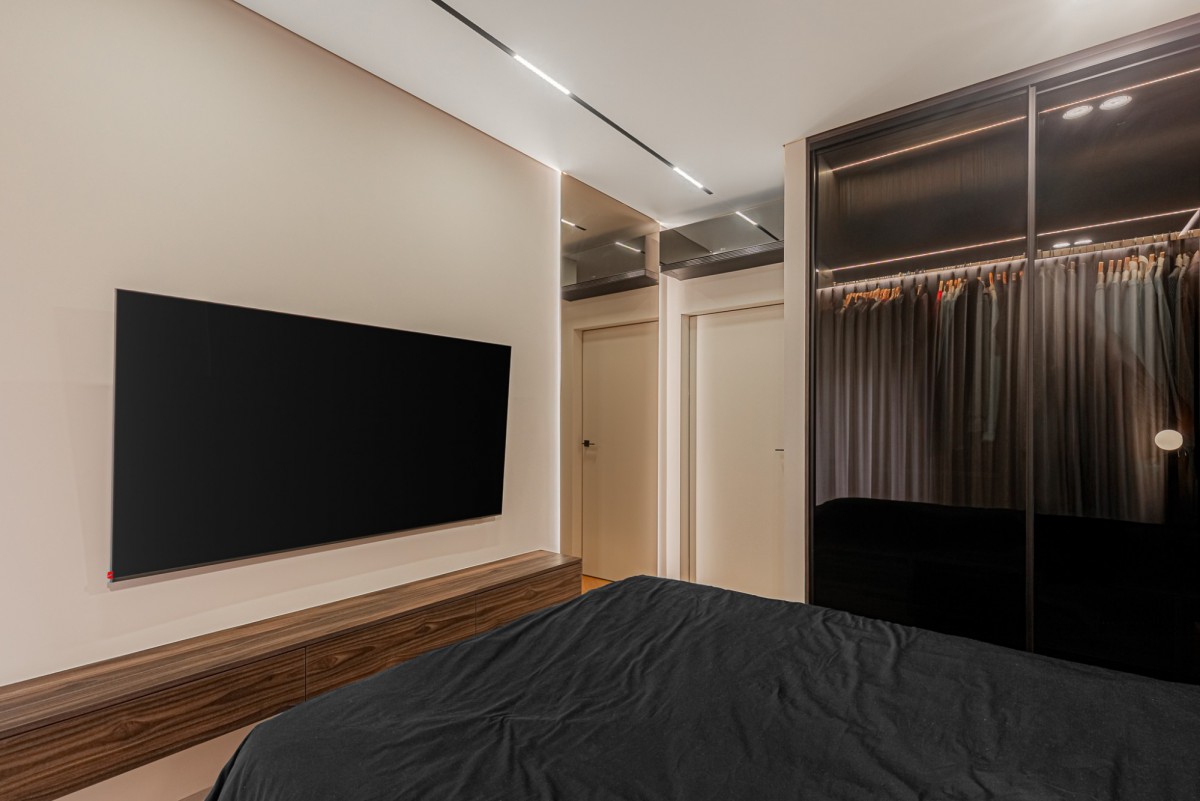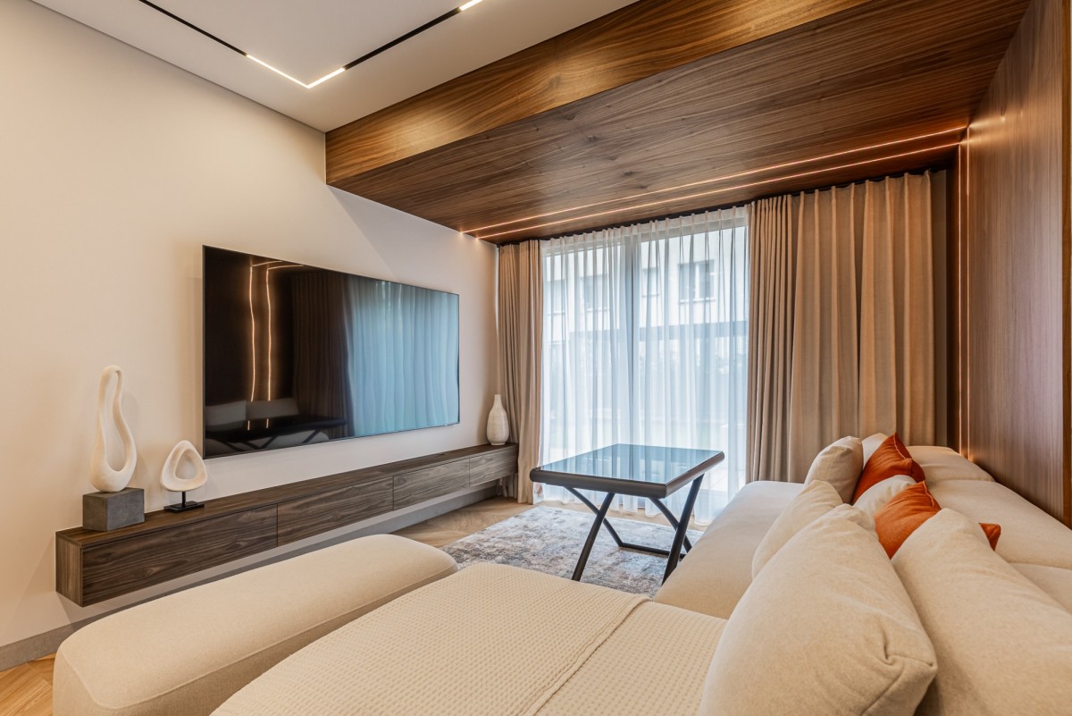 Apartament został wykończony w wysokim standardzie pod nadzorem architekta wnętrz. Wnętrze jest nowoczesne, spójne i gotowe do wprowadzenia. Nieruchomość wyposażona jest w wysokiej klasy sprzęt AGD, klimatyzację oraz lodówkę na wino.