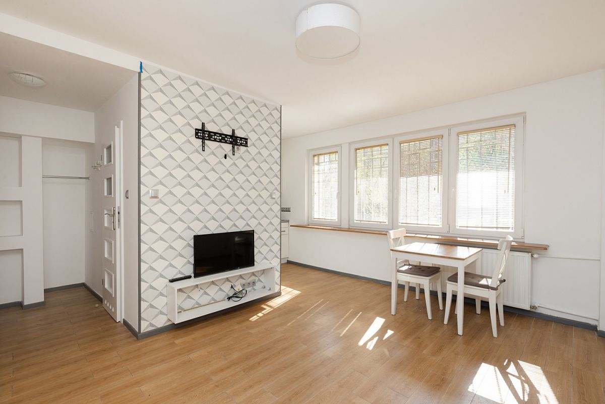 Mieszkanie o powierzchni 23 m² składa się z pokoju z wyposażonym aneksem kuchennym oraz w pełni funkcjonalnej małej łazienki (2,3 m²). Okna wychodzą na pięknie utrzymany wewnętrzny ogród.