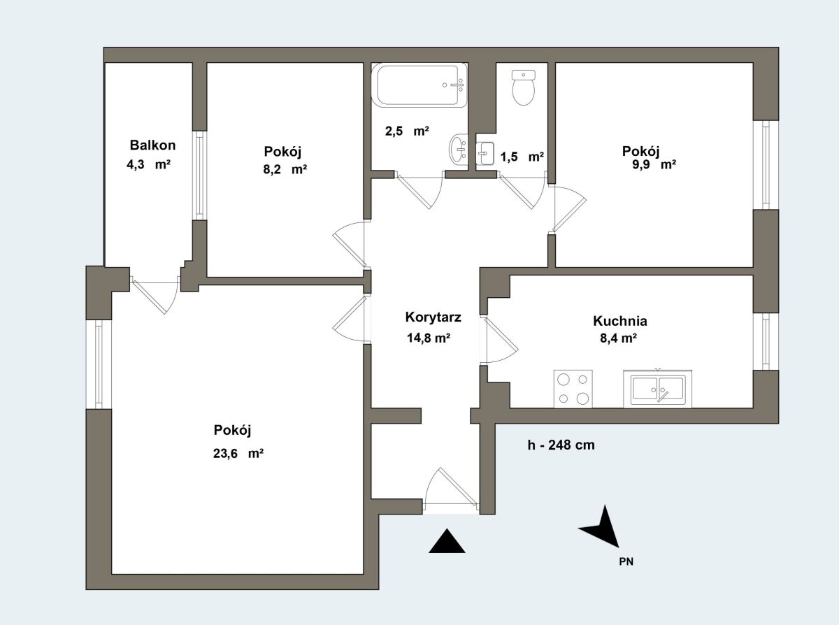 3-pokojowe mieszkanie o powierzchni 59,9 m² obejmuje: