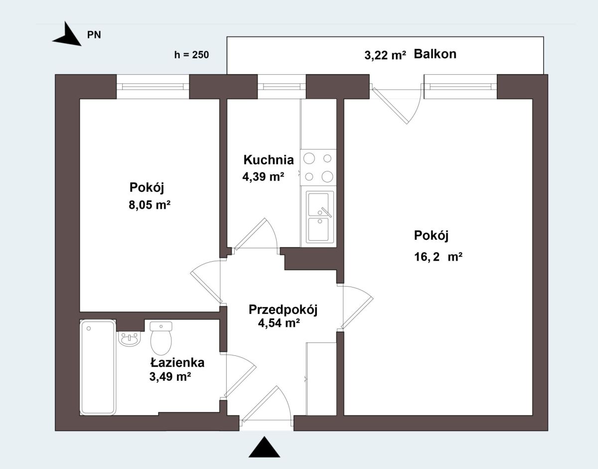 2-pokojowe mieszkanie o powierzchni 36,67 m² obejmuje: