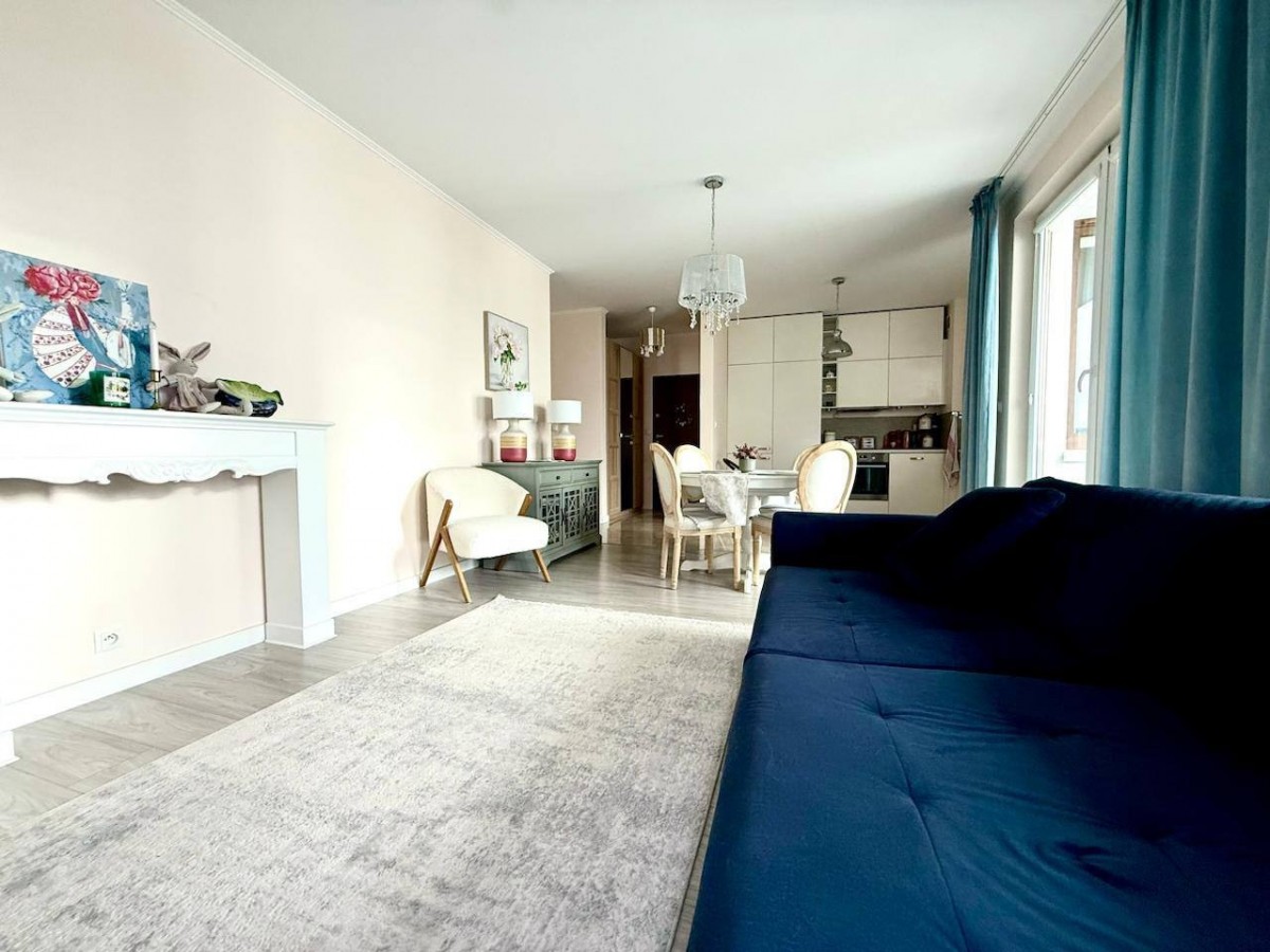 • przestronny salon połączony z aneksem kuchennym i wyjściem na duży balkon,