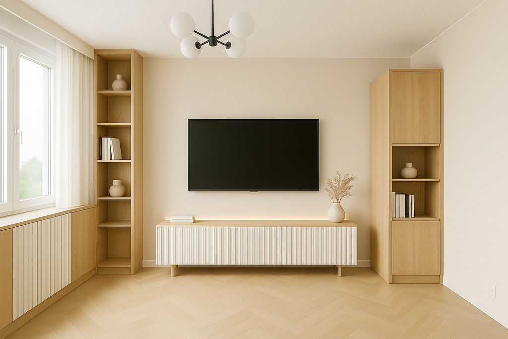 - Salon ( 19m2) z wyjściem na balkon (południowa ekspozycja okien)