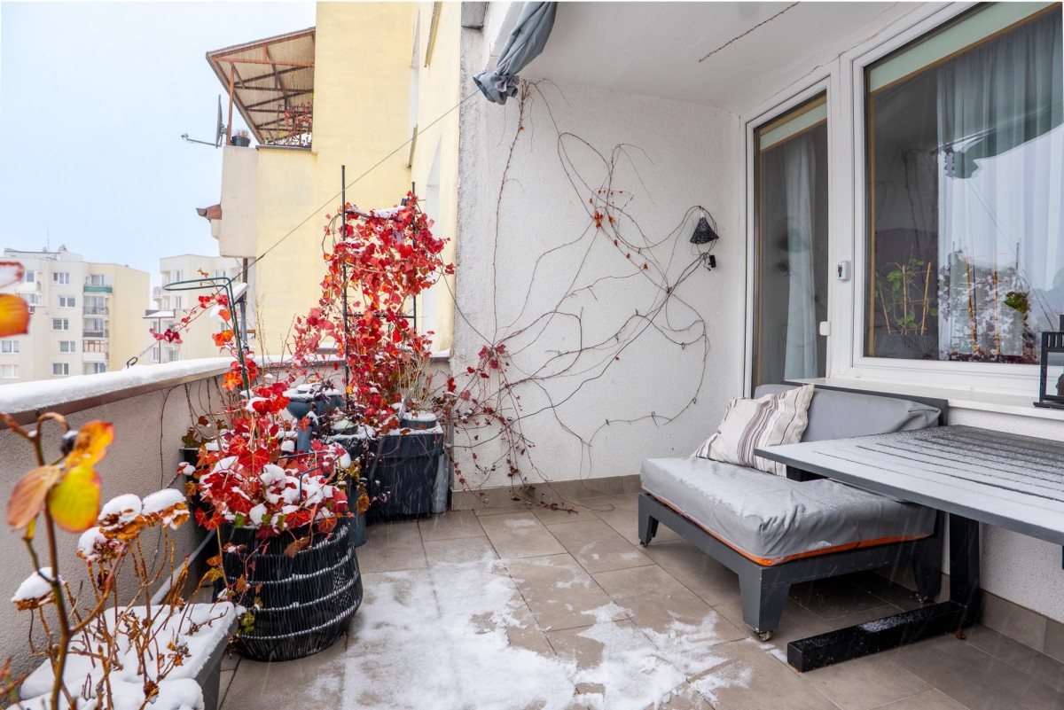 Atutem nieruchomości jest imponujący, prywatny taras o powierzchni około 25 metrów, który tworzy niezwykłą przestrzeń do wypoczynku, spotkań i relaksu ponad miastem.
