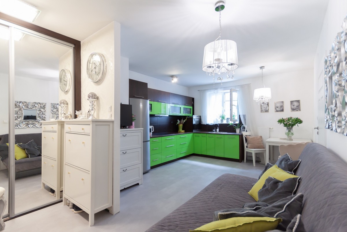 Salon połączony z kuchnią i przedpokojem - 22,6m2